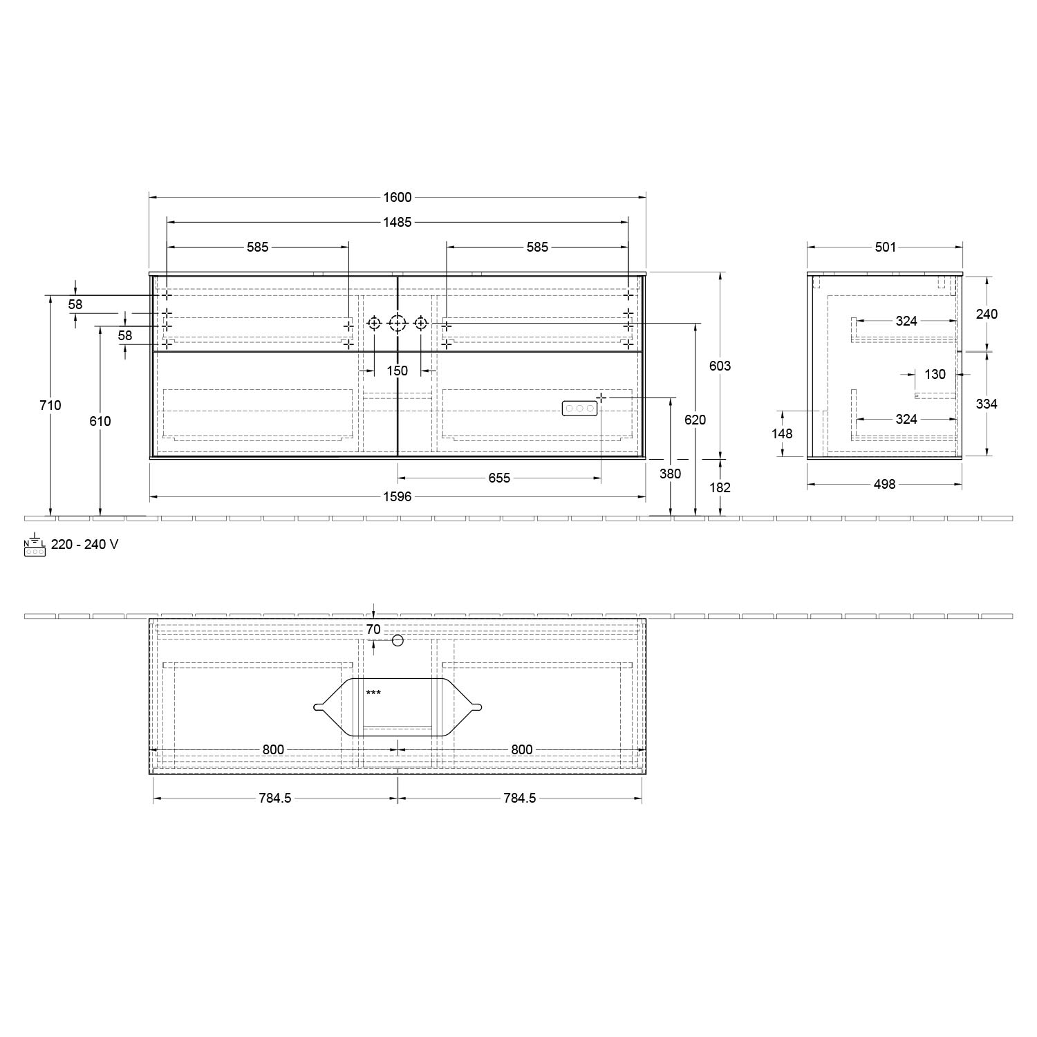Villeroy & Boch Finion Waschtischunterschrank 160 cm mit Abdeckplatte und LED Wandbeleuchtung