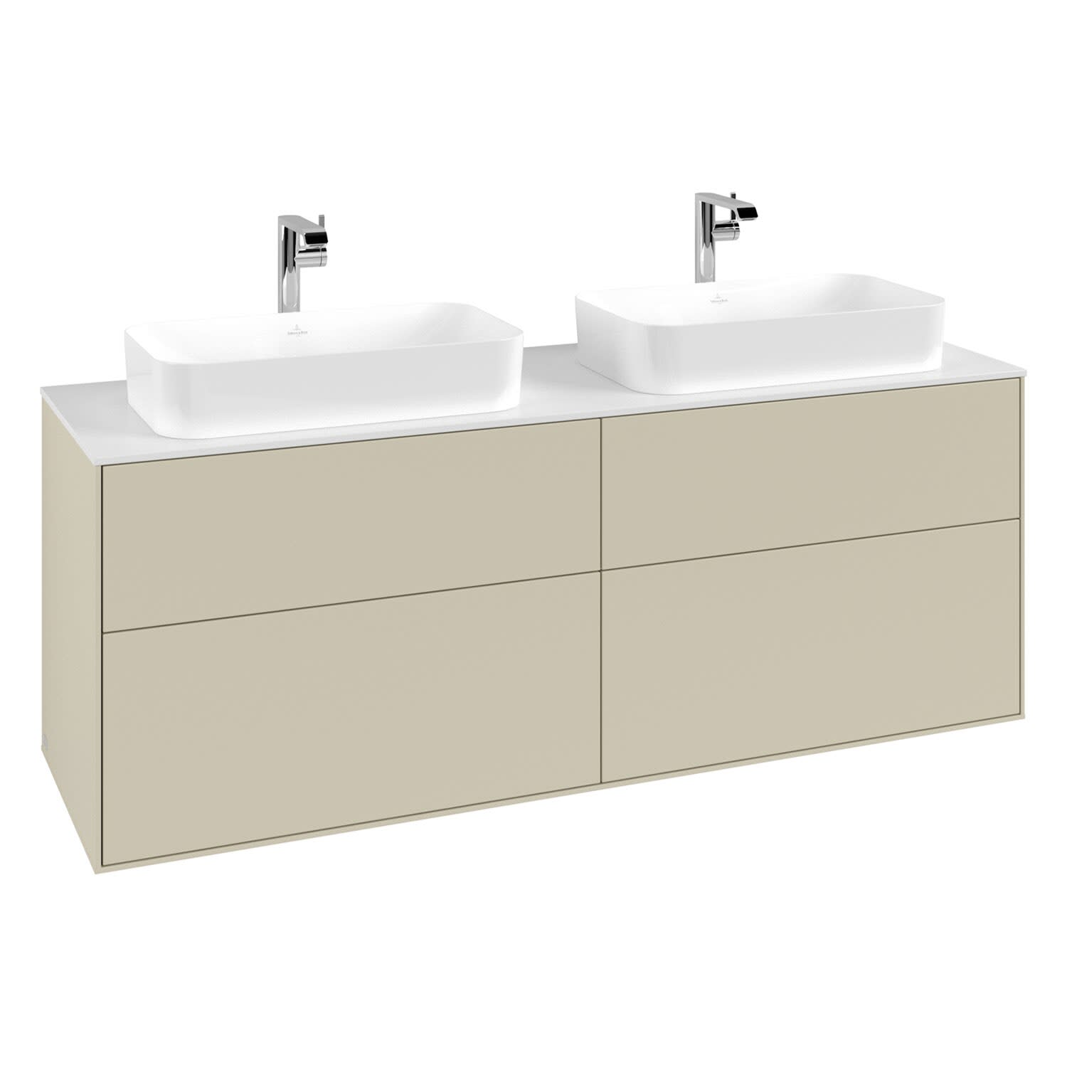 Villeroy & Boch Finion Waschtischunterschrank 160 cm mit Abdeckplatte und LED Wandbeleuchtung, für 2 Aufsatzwaschtische