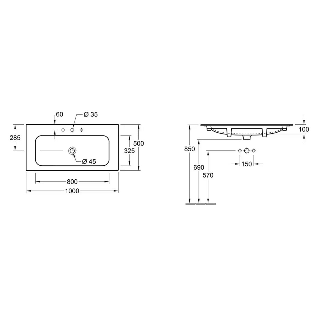 Villeroy & Boch Finion Schrankwaschtisch 100 cm mit 1 Hahnloch, mit ViFlow Überlauf
