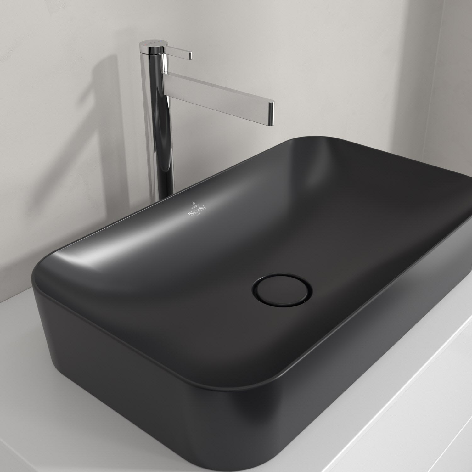 Das rechteckige Finion Aufsatzwaschbecken von Villeroy & Boch schafft mit seinem großzügigen Becken echten Komfort im Badezimmer. Bequemes Händewaschen und tägliche Badroutine sind damit problemlos zu erledigen. Extrem dünne Kanten mit außergewöhnlicher Festigkeit prägen den filigranen Charakter des Waschbeckens – ermöglicht durch den innovativen Werkstoff TitanCeram. Das flächenbündige, keramische Ablaufventil vervollständigt den edlen Look. Für ein Plus an Hygiene sorgt die schmutzabweisende Oberfläche. Damit geht die Reinigung noch leichter von der Hand.