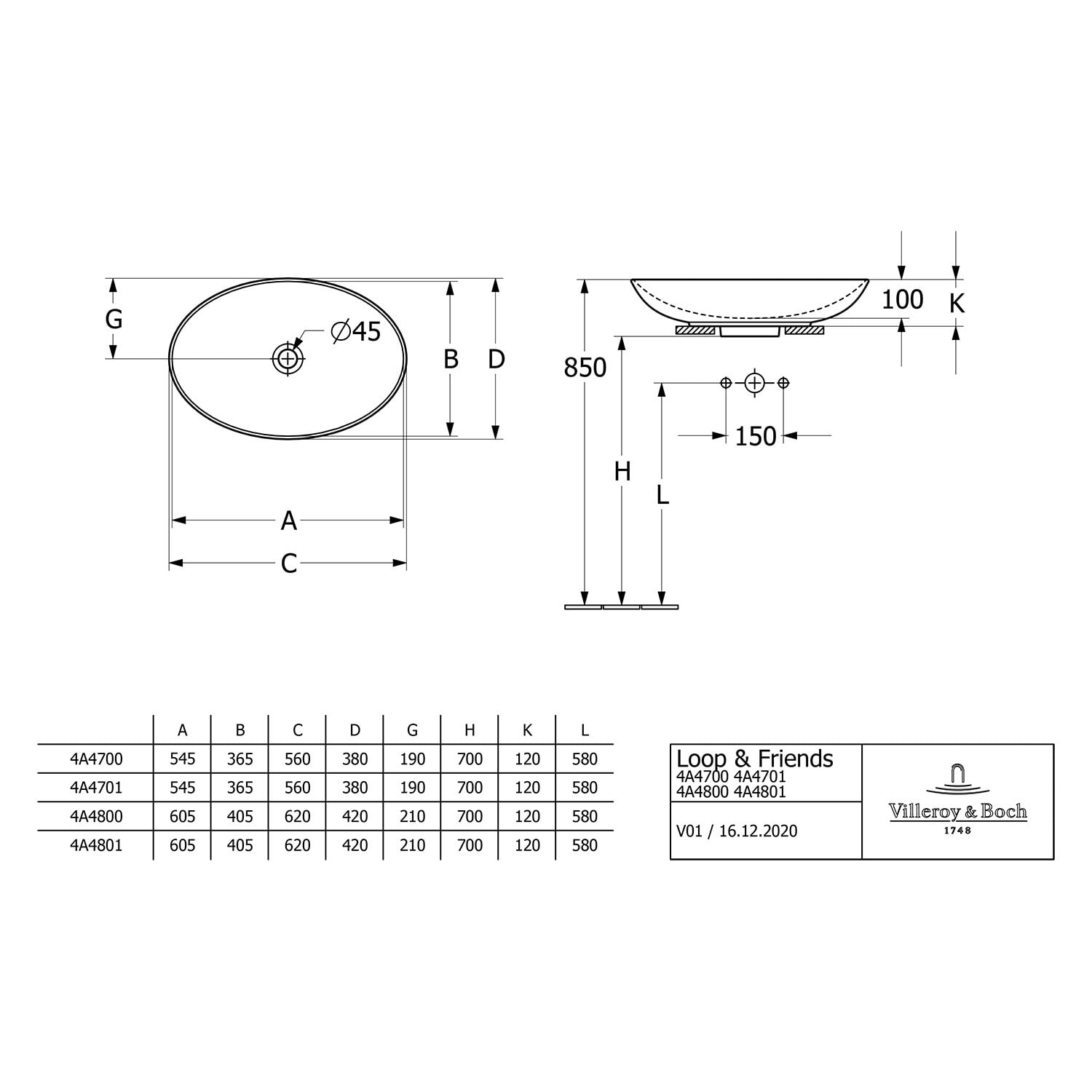 Villeroy & Boch Loop & Friends Aufsatzwaschtisch oval 62 x 42 cm