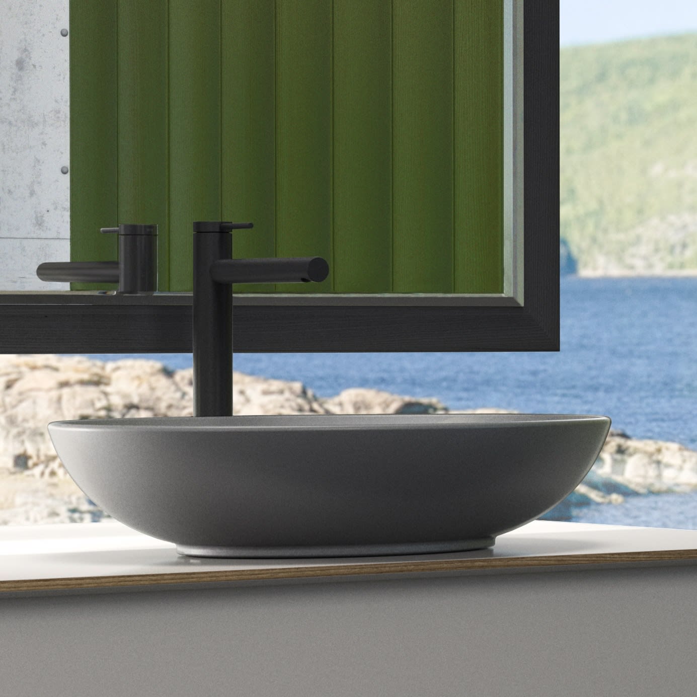 Das Villeroy & Boch Aufsatzwaschbecken aus der Kollektion Loop & Friends setzt mit seiner weichen, ovalen Formgebung zeitlose Akzente im Badezimmer. Dank des innovativen Werkstoffs TitanCeram ist das Waschbecken auch mit seiner dünnwandigen, schmalen Kante besonders widerstandsfähig und robust. Die moderne Überlauf-Form in länglichem Design komplettiert das einzigartige Design. Doch auch aus funktioneller Sicht punktet das Waschbecken: Durch das tiefe Becken kommt es zu weniger Wasserspritzern außerhalb des Waschbeckens und auch bequemes Haare waschen ist so möglich. Und sollte doch einmal Wasser den Rand herunterlaufen, kann es ganz einfach aufgewischt werden. Denn das Waschbecken steht auf einer kleinen Erhöhung, die ihm eine schwebende Optik verleiht und zugleich die Reinigung vereinfacht.