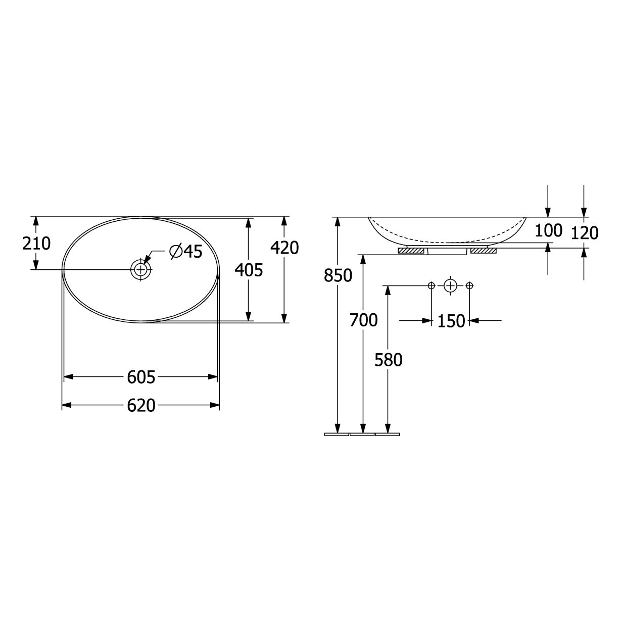 Villeroy & Boch Loop & Friends Aufsatzwaschtisch oval 62 x 42 cm