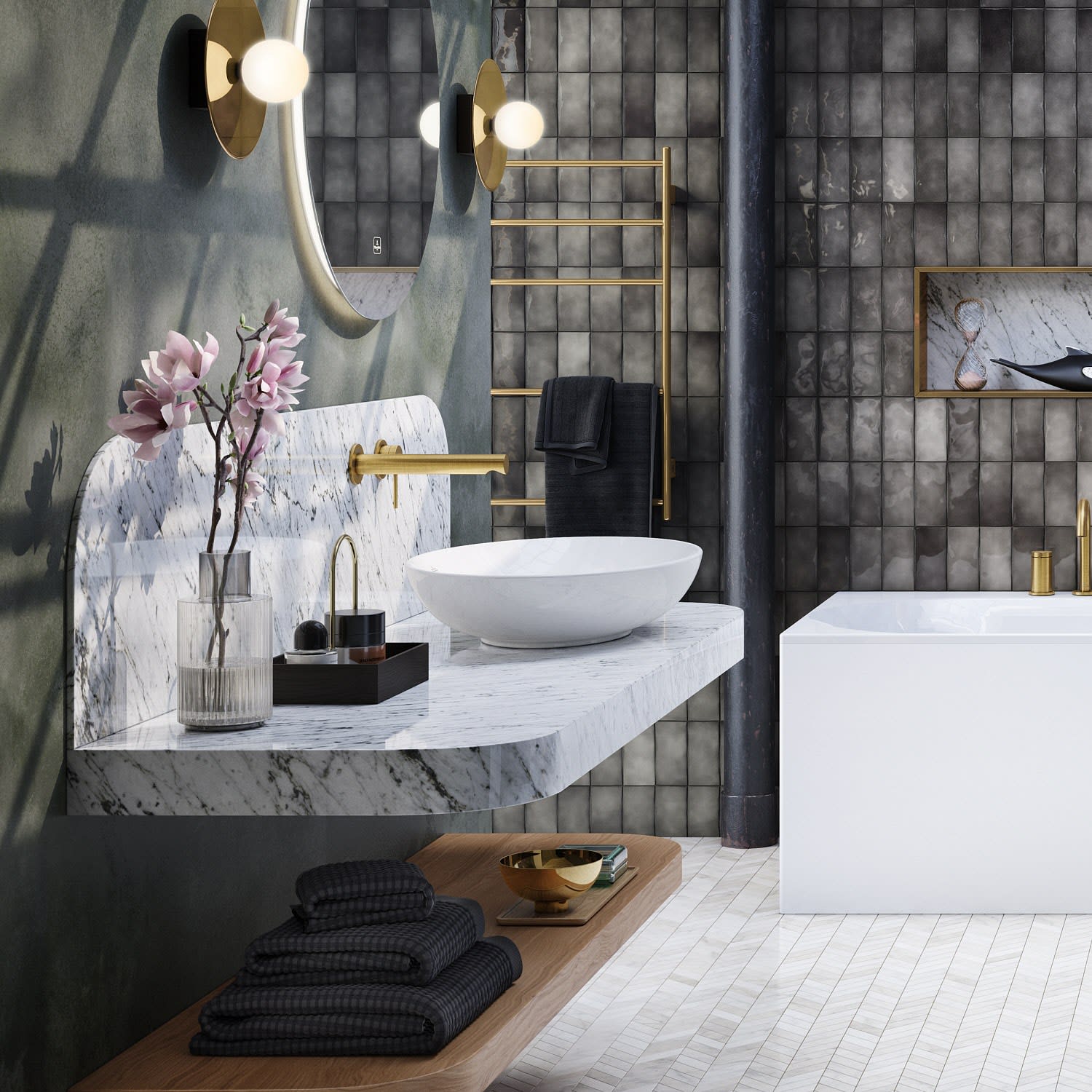 Das Villeroy & Boch Aufsatzwaschbecken aus der Kollektion Loop & Friends setzt mit seiner weichen, ovalen Formgebung zeitlose Akzente im Badezimmer. Dank des innovativen Werkstoffs TitanCeram ist das Waschbecken auch mit seiner dünnwandigen, schmalen Kante besonders widerstandsfähig und robust. Doch auch aus funktioneller Sicht punktet das Waschbecken: Durch das tiefe Becken kommt es zu weniger Wasserspritzern außerhalb des Waschbeckens und auch bequemes Haare waschen ist so möglich. Und sollte doch einmal Wasser den Rand herunterlaufen, kann es ganz einfach aufgewischt werden. Denn das Waschbecken steht auf einer kleinen Erhöhung, die ihm eine schwebende Optik verleiht und zugleich die Reinigung vereinfacht.