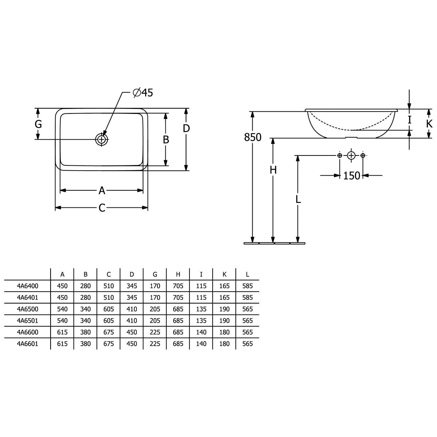 Villeroy & Boch Loop & Friends Einbauwaschbecken rechteckig 60 x 40,5 cm, ohne Überlauf