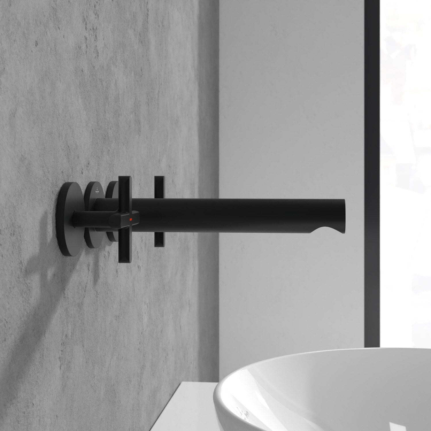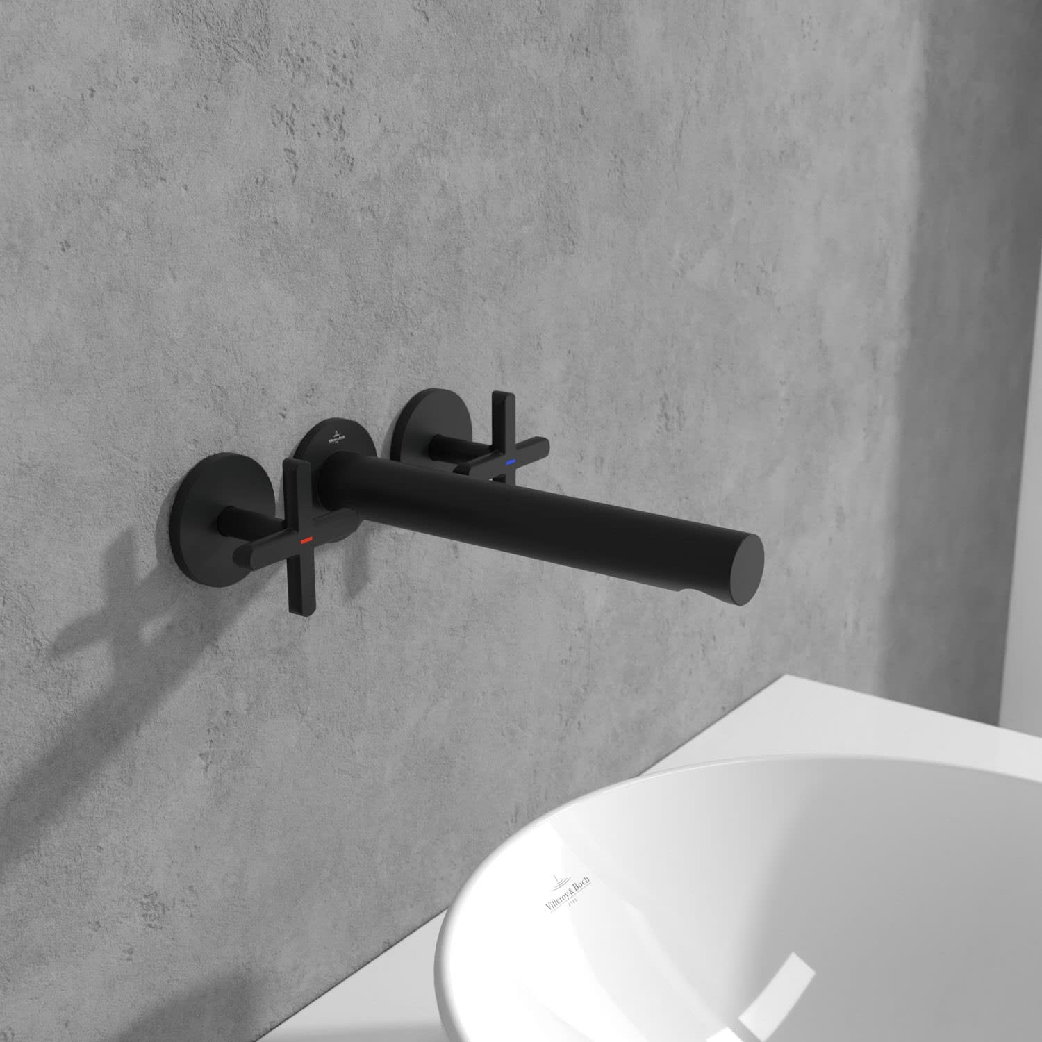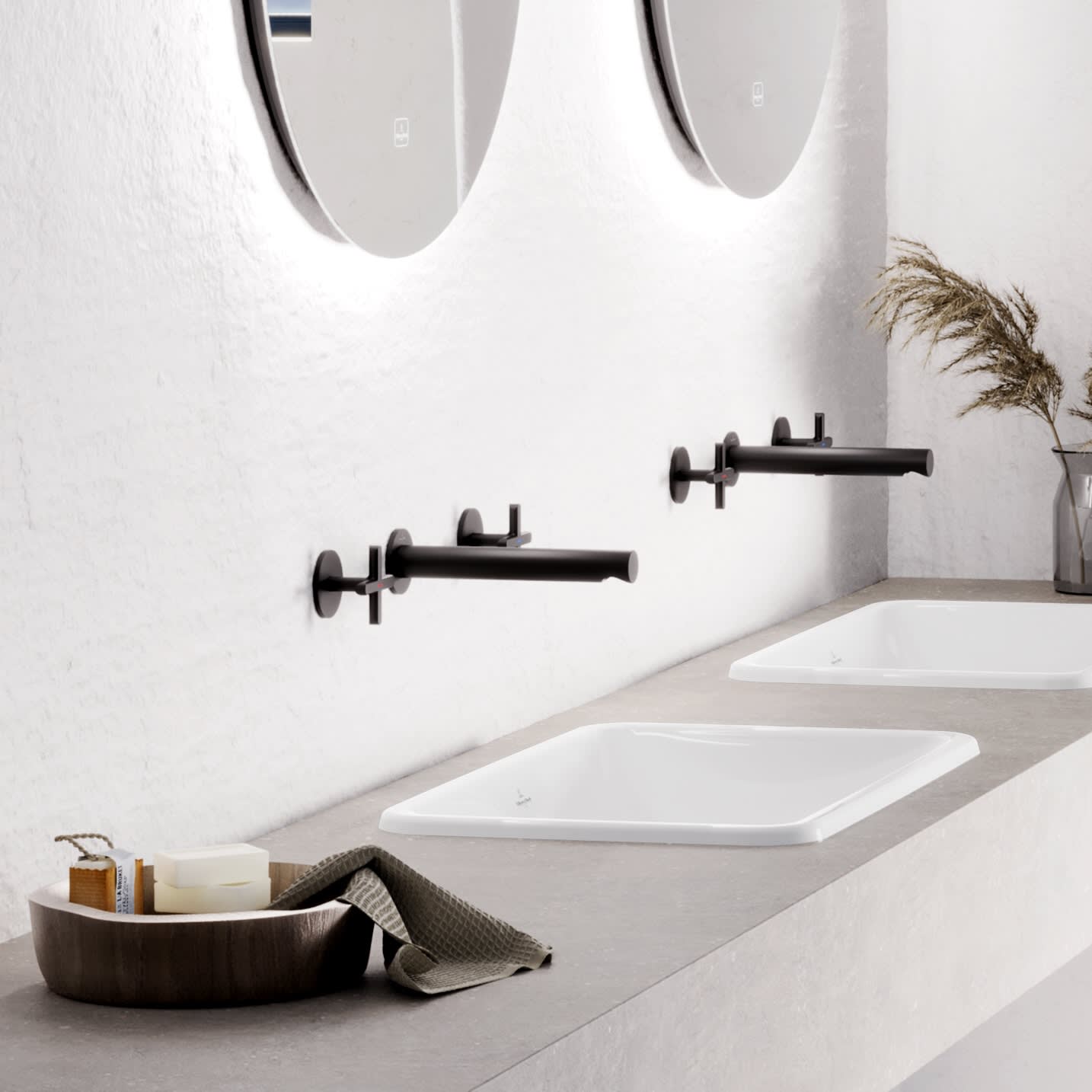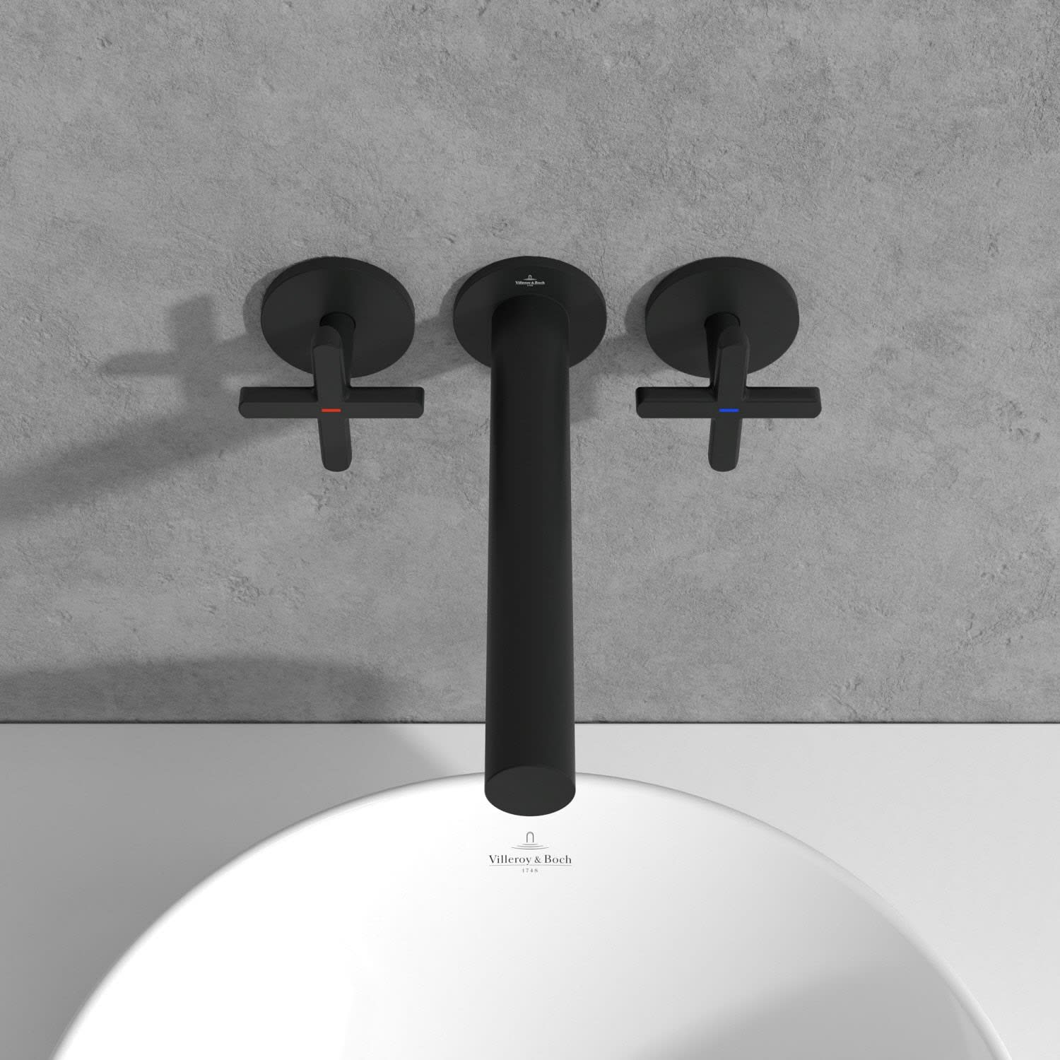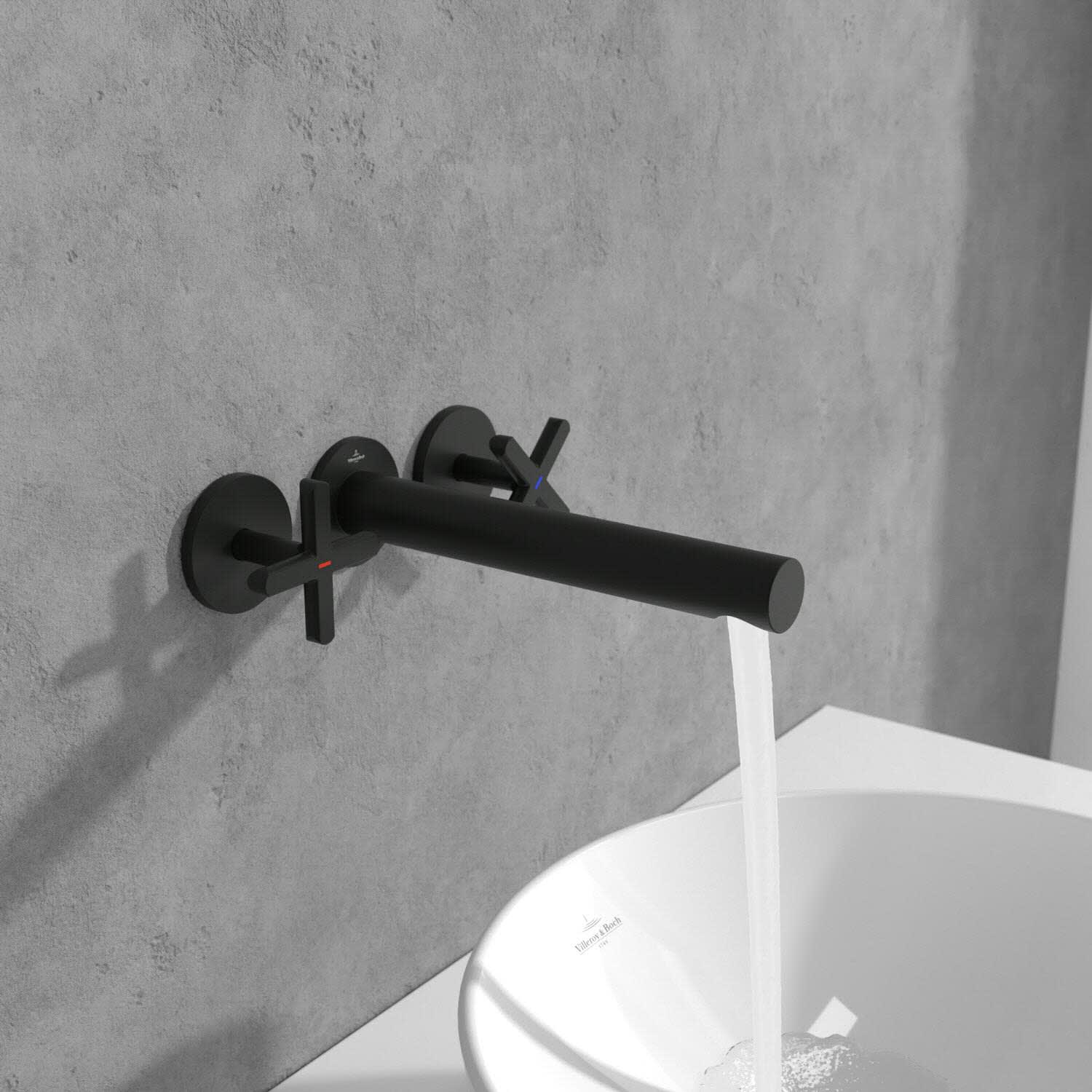 Der minimalistische und moderne Style der Loop & Friends Armaturen von Villeroy & Boch verwandelt jedes Badezimmer in einen ganz besonderen Ort. Dieses Waschtischauslauf-Set für die Wandmontage ist ein absolutes Highlight der Kollektion. Bei dem verwendeten Material handelt es sich um hochwertiges Messing. Das Set besteht aus dem eleganten, runden Auslauf mit optisch verdecktem Strahlregler und zwei einzigartigen Drehkreuzgriffen zur Steuerung der Wassertemperatur. Der mit Luft versetzte Wasserstrahl fühlt sich besonders wohl auf der Haut an. Kombiniert werden kann die Loop & Friends Armatur natürlich mit zahlreichen Waschtischen, besonders gut sehen sie aber auch zu den Produkten der gleichnamigen Kollektion aus – für ein Komplettbad mit Villeroy & Boch!