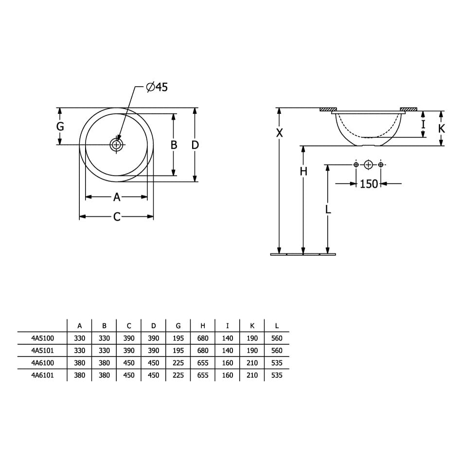 Villeroy & Boch Loop & Friends Unterbauwaschbecken Ø 38 cm, mit Überlauf