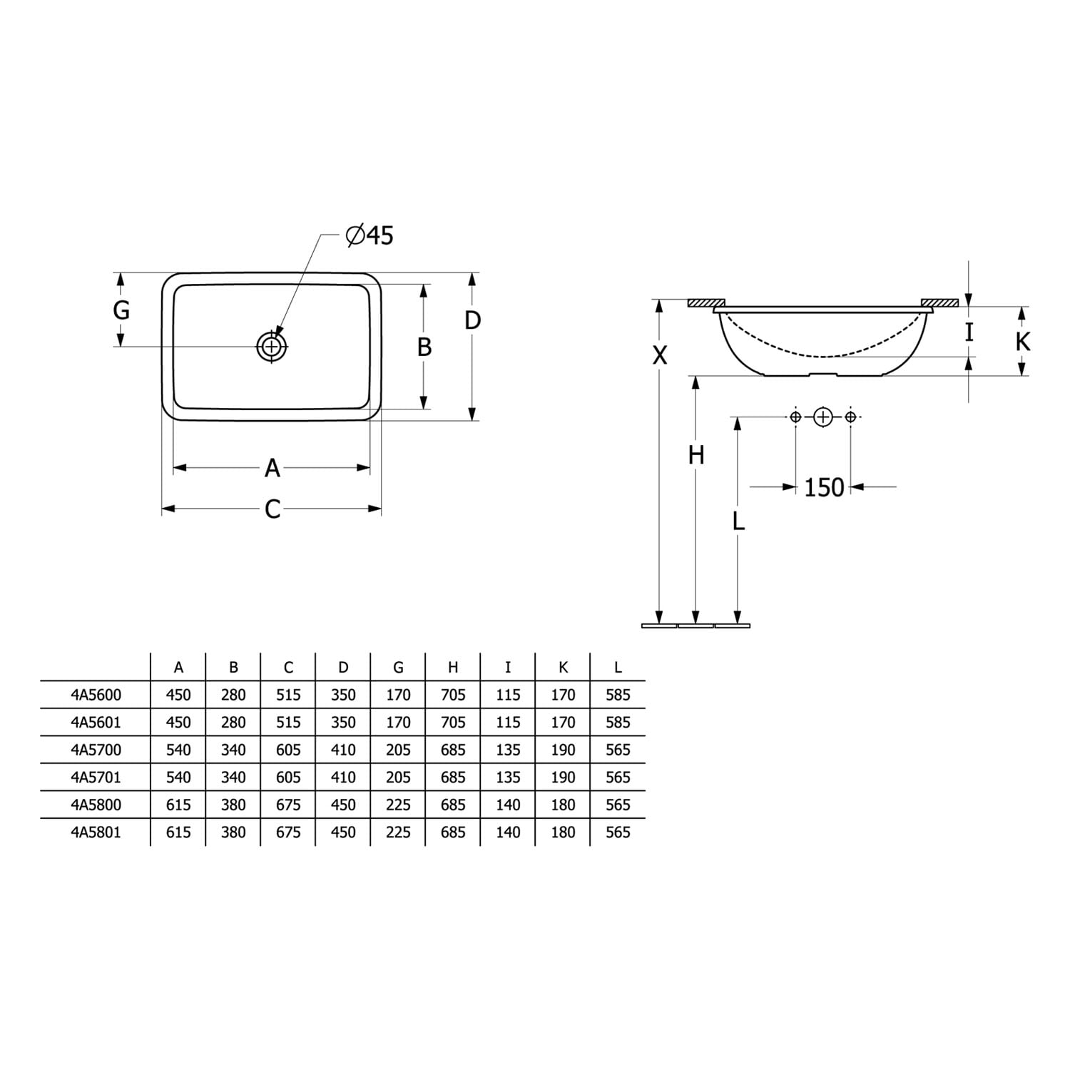 - moderne Überlaufloch-Form in länglichem Design