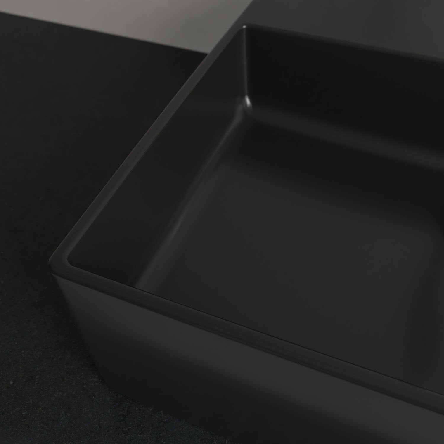 Das rechteckige Memento 2.0 Aufsatzwaschbecken von Villeroy & Boch besticht durch sein modernes Design. Ermöglicht wird dieses durch den innovativen Werkstoff TitanCeram, der extrem dünne Wandstärken und präzise Konturen entstehen lässt. Auf einem passenden Unterschrank oder einer Konsole montiert, erscheint das Waschbecken besonders filigran und leicht. Auch funktional kann es mit komfortablen Ablageflächen auf der breiten Hahnlochbank glänzen. Außerdem ist die Keramikoberfläche schmutzabweisend, sodass die Reinigung besonders schnell und leicht von der Hand geht. Das perfekte Waschbecken für eine individuelle und unverwechselbare Note im modernen Bad.
