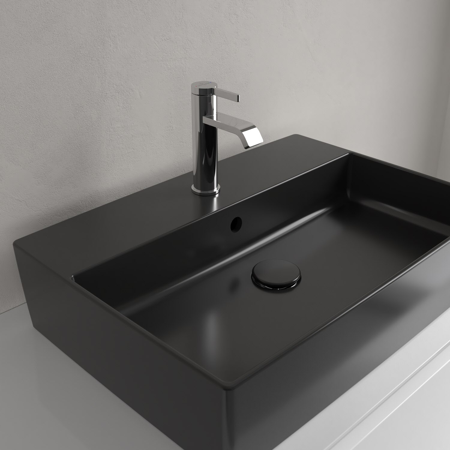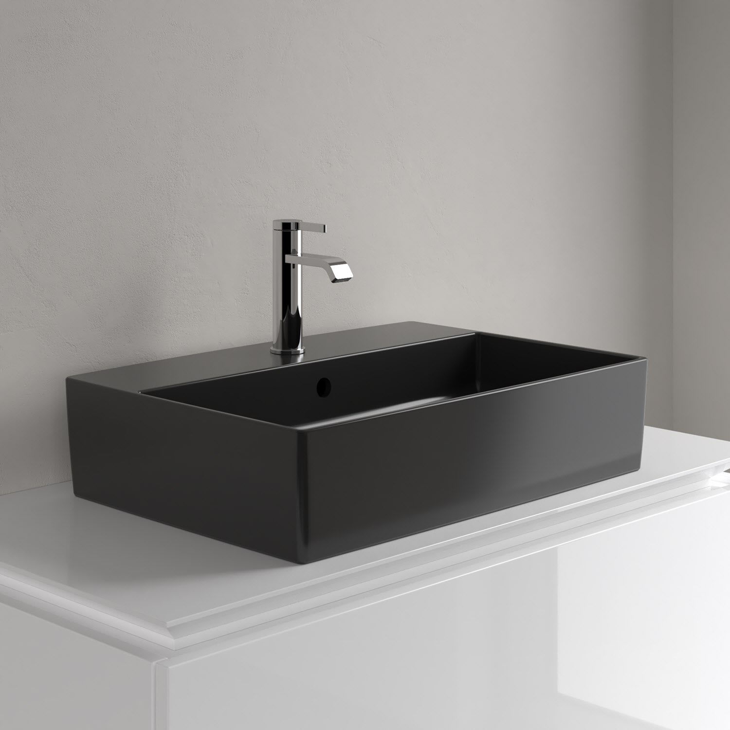 Das rechteckige Memento 2.0 Aufsatzwaschbecken von Villeroy & Boch besticht durch sein modernes Design. Ermöglicht wird dieses durch den innovativen Werkstoff TitanCeram, der extrem dünne Wandstärken und präzise Konturen entstehen lässt. Auf einem passenden Unterschrank oder einer Konsole montiert, erscheint das Waschbecken besonders filigran und leicht. Auch funktional kann es mit komfortablen Ablageflächen auf der breiten Hahnlochbank glänzen. Außerdem ist die Keramikoberfläche schmutzabweisend, sodass die Reinigung besonders schnell und leicht von der Hand geht. Das perfekte Waschbecken für eine individuelle und unverwechselbare Note im modernen Bad.