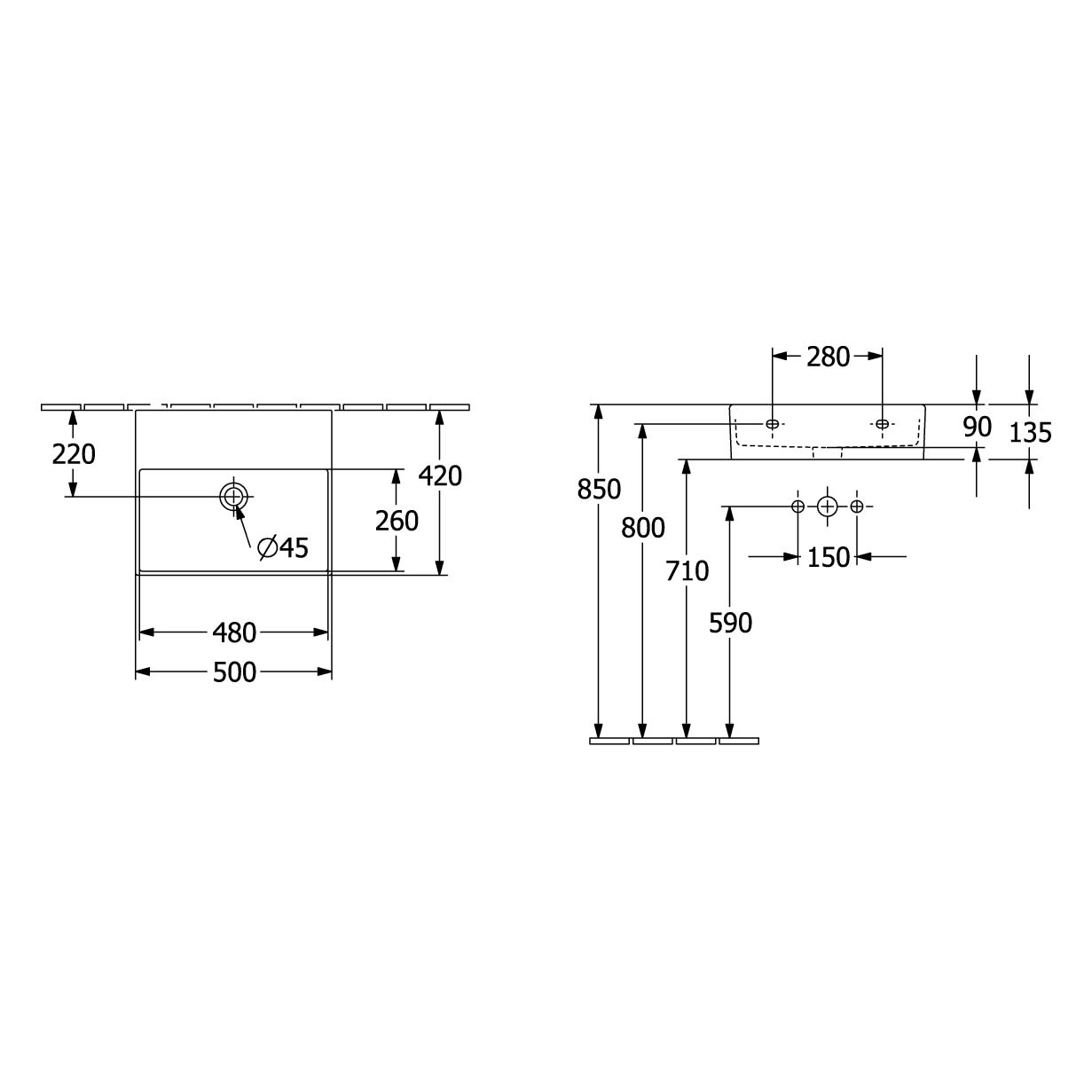 Villeroy & Boch Memento 2.0 Waschtisch 50 cm ohne Hahnloch, ohne Überlauf