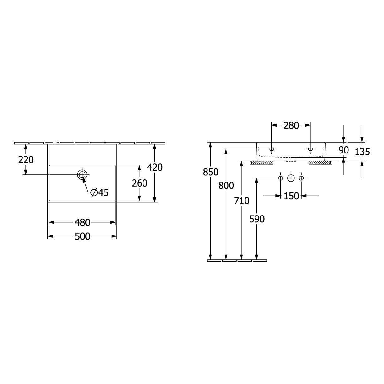 Villeroy & Boch Memento 2.0 Waschtisch 50 cm ohne Hahnloch, ohne Überlauf