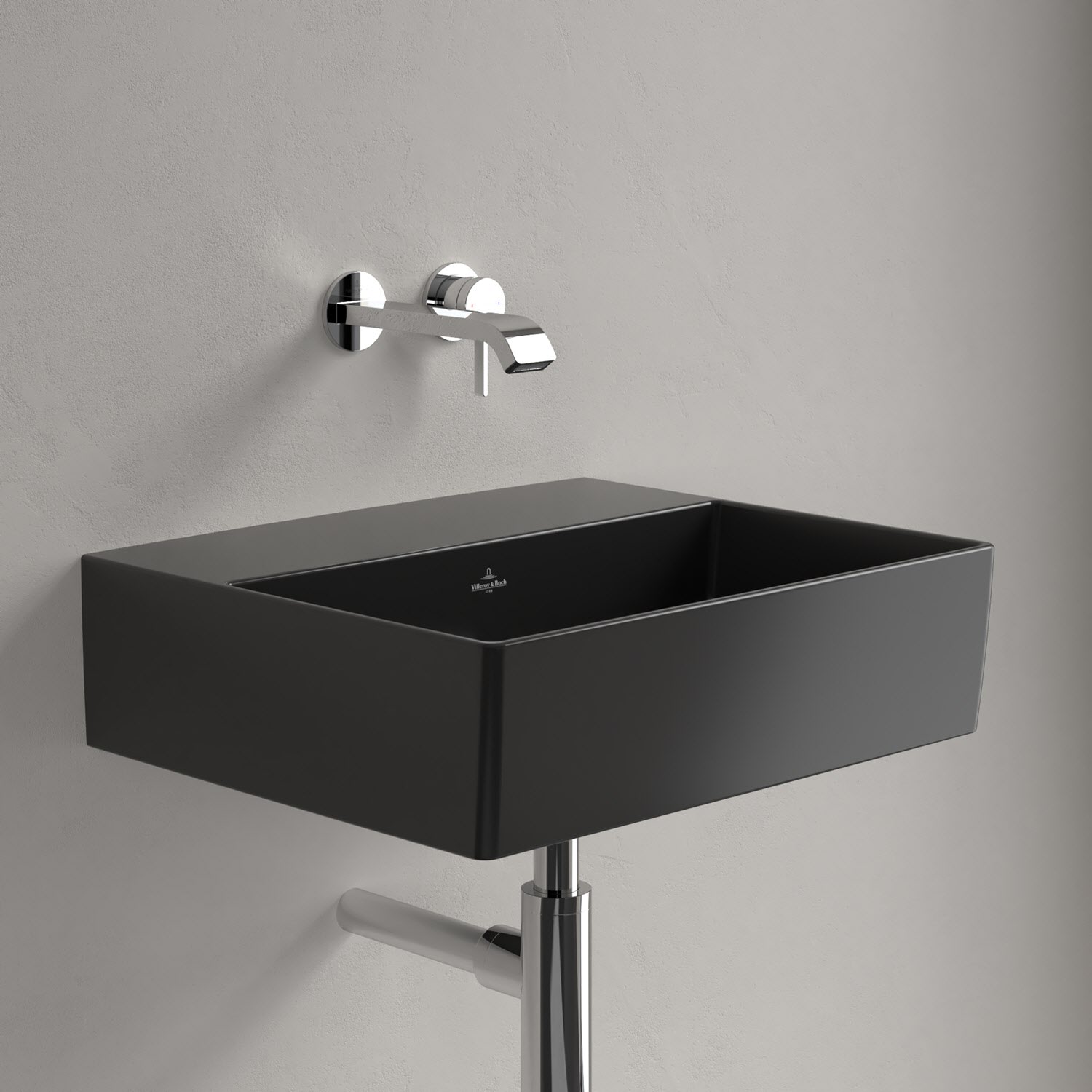Das rechteckige Wandwaschbecken der Kollektion Memento 2.0 von Villeroy & Boch macht den Waschplatz zum wahren Blickfang im Badezimmer. Sein modernes Design erhält das Waschbecken dank des innovativen Werkstoffs TitanCeram, mit dem sehr dünne Wandstärken und präzise Konturen entstehen. Für eine komfortable Ablagefläche sorgt die breite, durchgehende Hahnlochbank. Sie steht Badutensilien dank Installation einer Wandauslaufarmatur komplett frei zur Verfügung. Eine spezielle Beschichtung macht die Keramikoberfläche sehr pflegeleicht und schmutzabweisend. Unverwechselbar und höchst funktional.