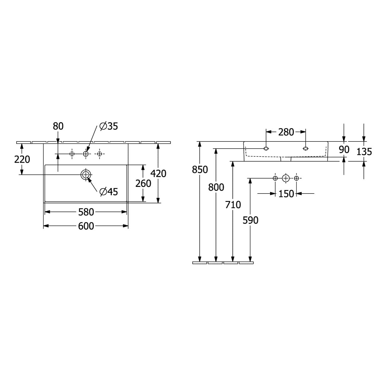 Villeroy & Boch Memento 2.0 Waschtisch 60 cm ohne Hahnloch, mit Überlauf