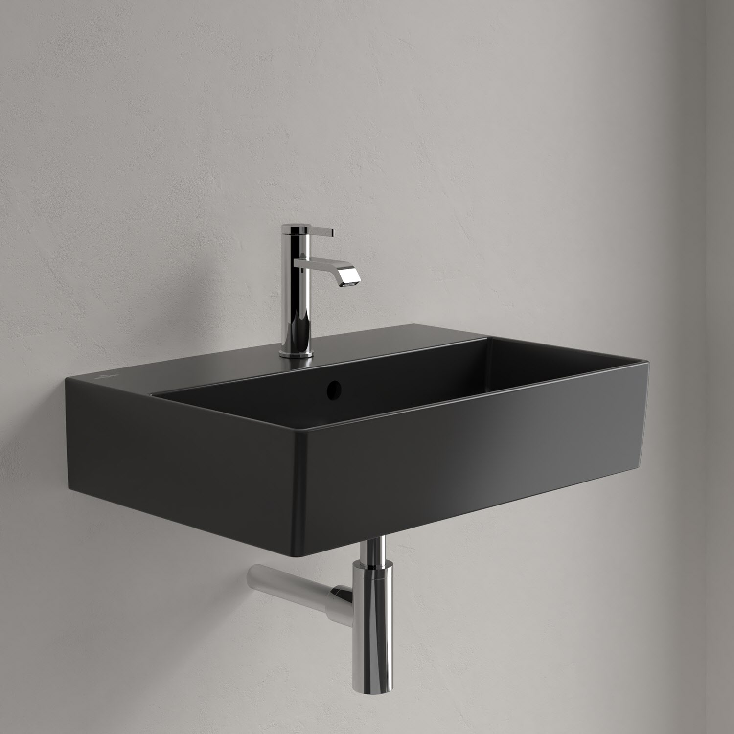 Das rechteckige Wandwaschbecken der Kollektion Memento 2.0 von Villeroy & Boch macht den Waschplatz zum wahren Blickfang im Badezimmer. Sein modernes Design erhält das Waschbecken dank des innovativen Werkstoffs TitanCeram, mit dem sehr dünne Wandstärken und präzise Konturen entstehen. Für eine komfortable Ablagefläche sorgt die breite, durchgehende Hahnlochbank. Dank spezieller Beschichtung ist die Keramikoberfläche sehr pflegeleicht und schmutzabweisend. Unverwechselbar und höchst funktional.