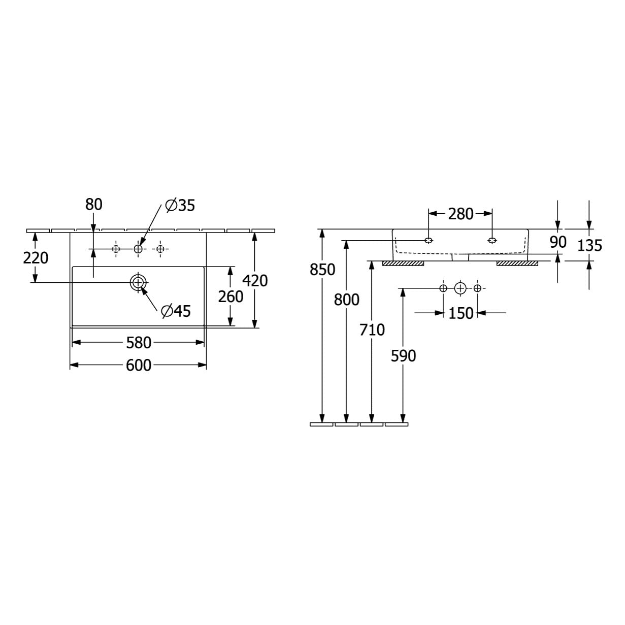 Villeroy & Boch Memento 2.0 Waschtisch 60 cm mit Hahnloch, mit Überlauf