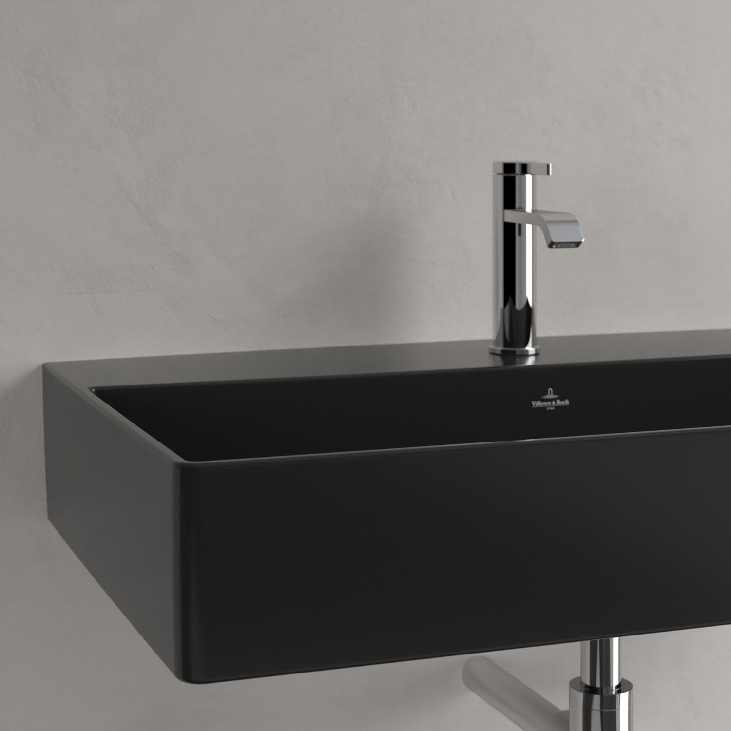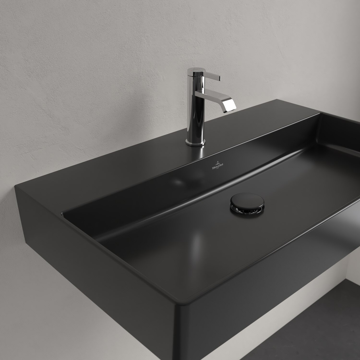 Das rechteckige Wandwaschbecken der Kollektion Memento 2.0 von Villeroy & Boch macht den Waschplatz zum wahren Blickfang im Badezimmer. Sein modernes Design erhält das Waschbecken dank des innovativen Werkstoffs TitanCeram, mit dem sehr dünne Wandstärken und präzise Konturen entstehen. Für eine komfortable Ablagefläche sorgt die breite, durchgehende Hahnlochbank. Dank spezieller Beschichtung ist die Keramikoberfläche sehr pflegeleicht und schmutzabweisend. Unverwechselbar und höchst funktional.