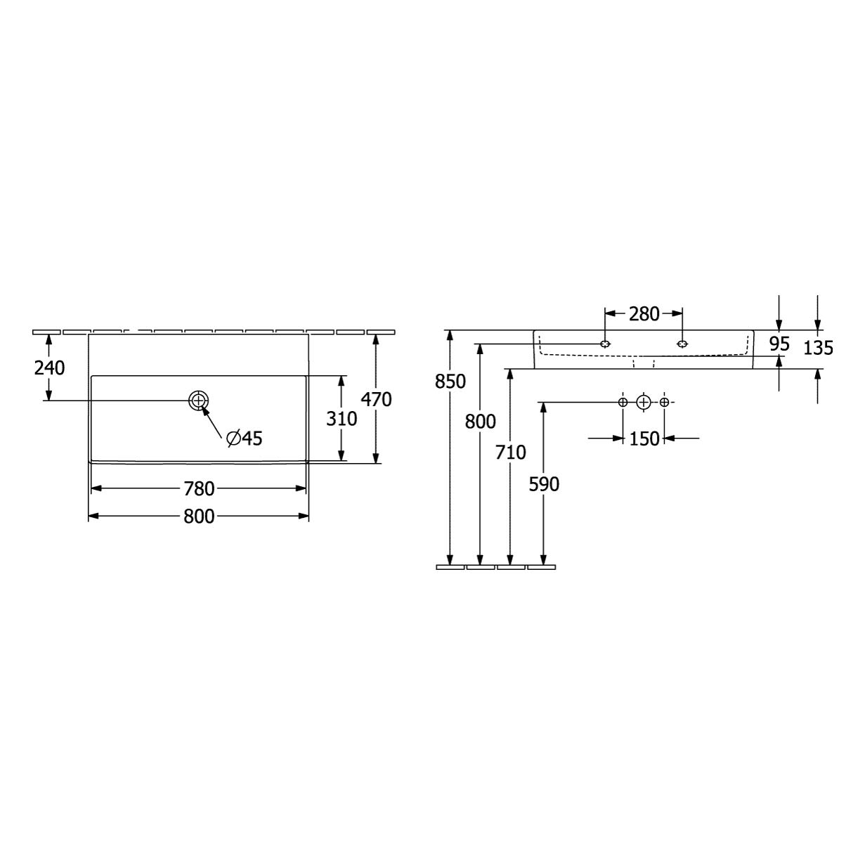 Villeroy & Boch Memento 2.0 Waschtisch 80 cm ohne Hahnloch, ohne Überlauf