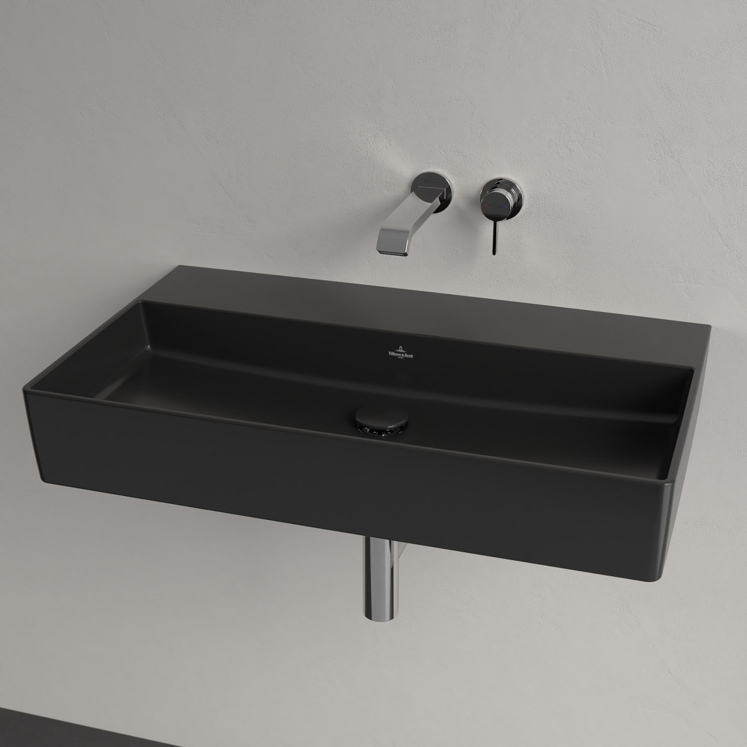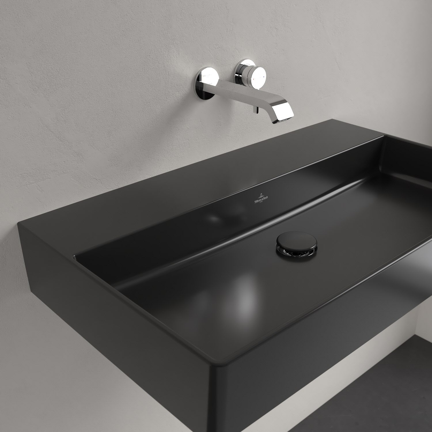 Das rechteckige Wandwaschbecken der Kollektion Memento 2.0 von Villeroy & Boch macht den Waschplatz zum wahren Blickfang im Badezimmer. Sein modernes Design erhält das Waschbecken dank des innovativen Werkstoffs TitanCeram, mit dem sehr dünne Wandstärken und präzise Konturen entstehen. Für eine komfortable Ablagefläche sorgt die breite, durchgehende Hahnlochbank. Sie steht Badutensilien dank Installation einer Wandauslaufarmatur komplett frei zur Verfügung. Eine spezielle Beschichtung macht die Keramikoberfläche sehr pflegeleicht und schmutzabweisend. Unverwechselbar und höchst funktional.
