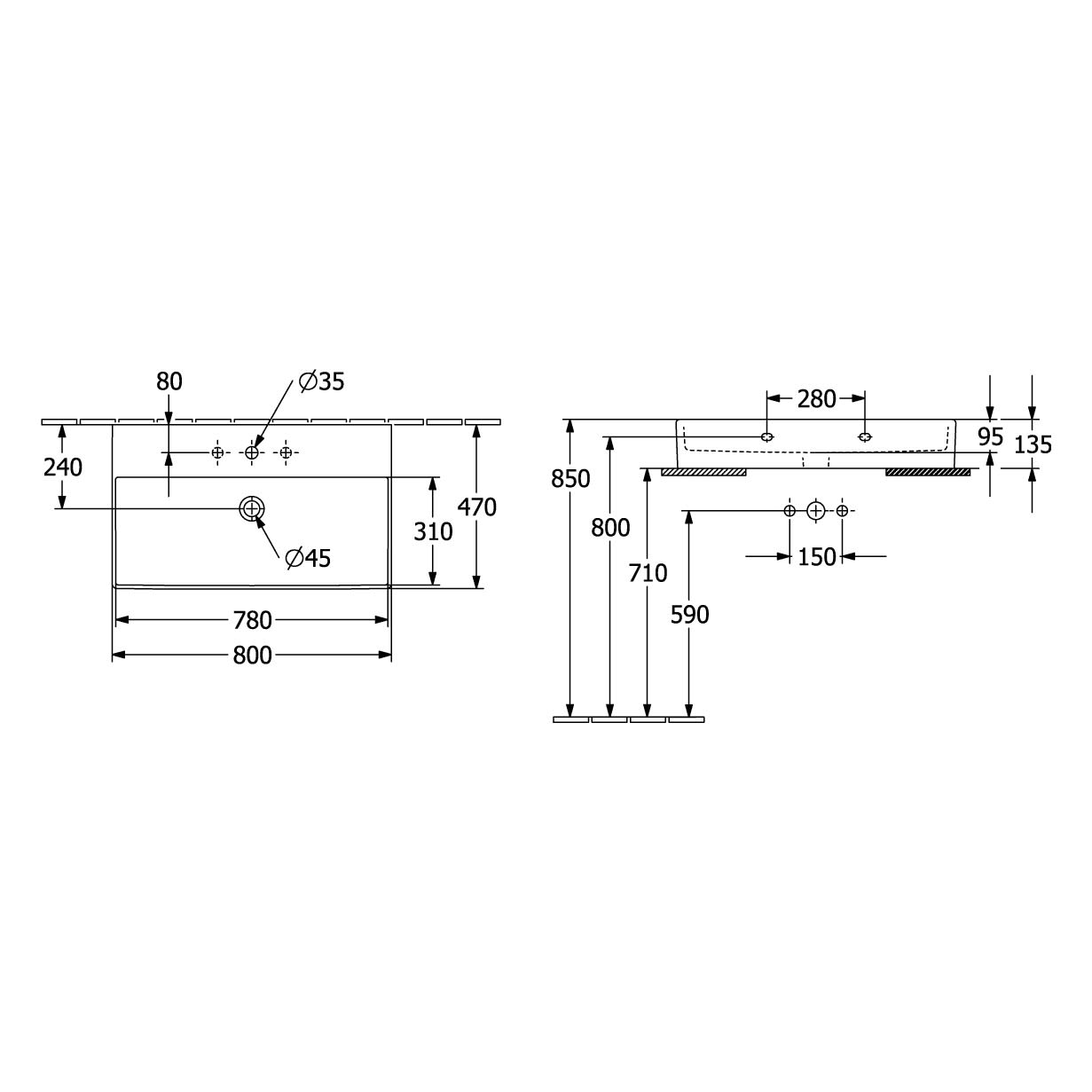 Villeroy & Boch Memento 2.0 Waschtisch 80 cm mit Hahnloch, mit Überlauf