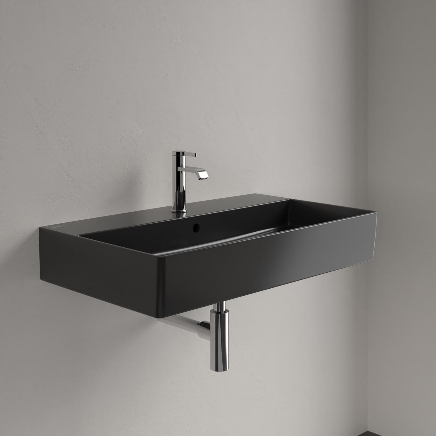 Das rechteckige Wandwaschbecken der Kollektion Memento 2.0 von Villeroy & Boch macht den Waschplatz zum wahren Blickfang im Badezimmer. Sein modernes Design erhält das Waschbecken dank des innovativen Werkstoffs TitanCeram, mit dem sehr dünne Wandstärken und präzise Konturen entstehen. Für eine komfortable Ablagefläche sorgt die breite, durchgehende Hahnlochbank. Dank spezieller Beschichtung ist die Keramikoberfläche sehr pflegeleicht und schmutzabweisend. Unverwechselbar und höchst funktional.