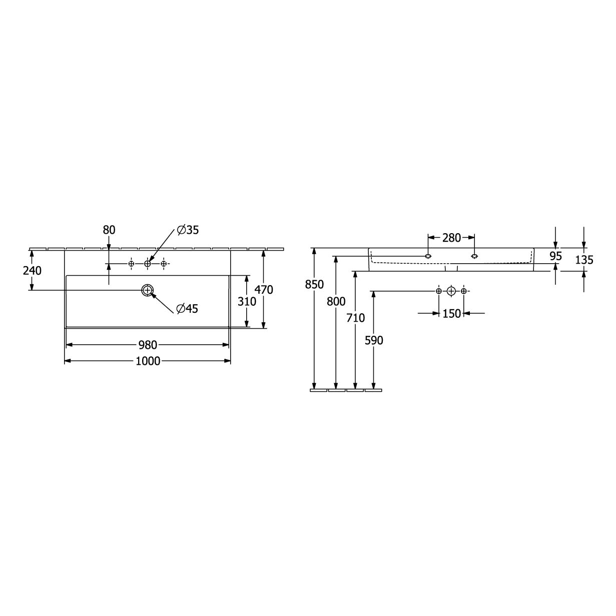 Villeroy & Boch Memento 2.0 Waschtisch 100 cm ohne Hahnloch, mit Überlauf