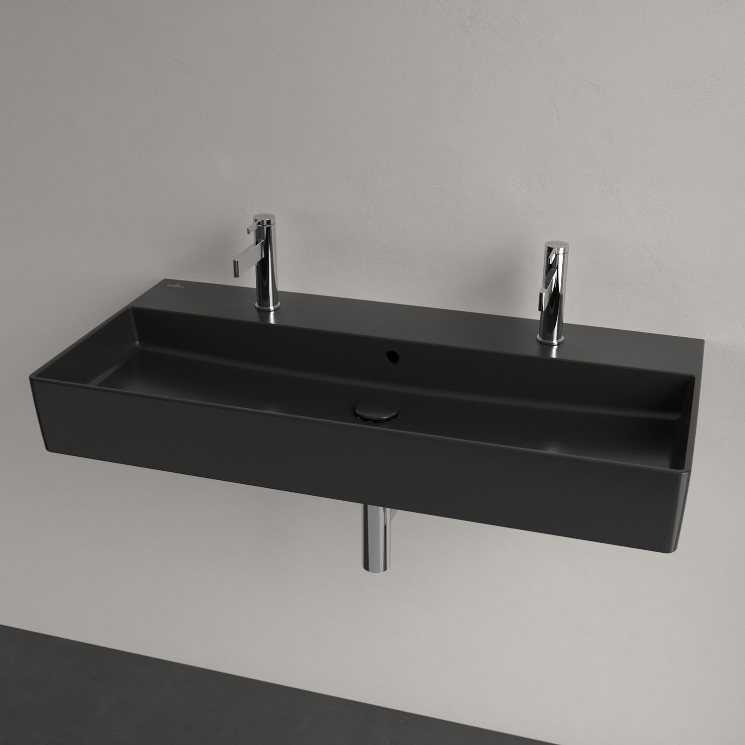 Das rechteckige Doppel-Wandwaschbecken der Kollektion Memento 2.0 von Villeroy & Boch bringt edlen Komfort ins Familienbad. Gefertigt aus dem innovativen Werkstoff TitanCeram wirkt das Waschbecken dank seiner extrem dünnen Kanten mit außergewöhnlicher Festigkeit besonders modern und leicht. Die beiden Hahnlöcher mit Platz für zwei Armaturen ermöglichen gleich zwei Personen, sich der täglichen Badroutine zu widmen. Dafür benötigte Utensilien können griffbereit auf der breiten Hahnlochbank stehen. Für eine schnelle Reinigung der Keramik sorgt die schmutzabweisende Oberfläche. Praktisch und komfortabel.