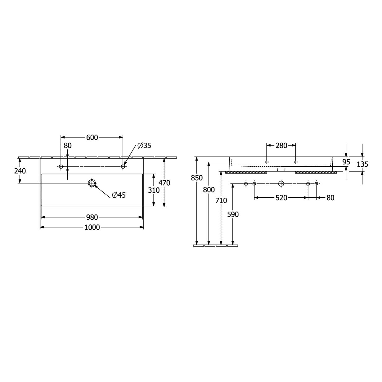 Villeroy & Boch Memento 2.0 Waschtisch 100 cm mit 2 Hahnlöchern, ohne Überlauf