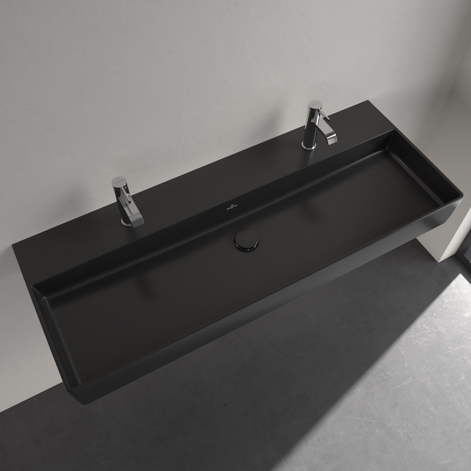 Das rechteckige Doppel-Wandwaschbecken der Kollektion Memento 2.0 von Villeroy & Boch bringt edlen Komfort ins Familienbad. Gefertigt aus dem innovativen Werkstoff TitanCeram wirkt das Waschbecken dank seiner extrem dünnen Kanten mit außergewöhnlicher Festigkeit besonders modern und leicht. Die beiden Hahnlöcher mit Platz für zwei Armaturen ermöglichen gleich zwei Personen, sich der täglichen Badroutine zu widmen. Dafür benötigte Utensilien können griffbereit auf der breiten Hahnlochbank stehen. Für eine schnelle Reinigung der Keramik sorgt die schmutzabweisende Oberfläche. Praktisch und komfortabel.