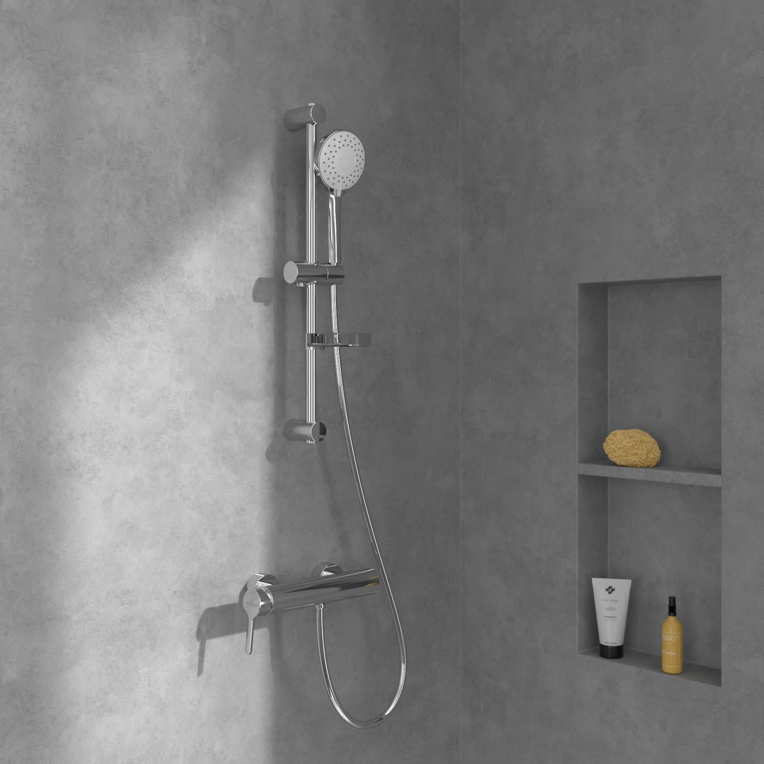 Die Skyla Einhebel-Duscharmatur von Villeroy & Boch vereint modernes Design mit maximaler Funktionalität. Die sanfte, organische Form sorgen für eine harmonische Optik, die perfekt auf die Skyla Kollektion abgestimmt ist. Das klassische Chrom-Finish passt ideal zu verschiedenen Badstilen und ergänzt die Bestseller-Dekore der Skyla Badmöbel. Die Einhebel-Bedienung ermöglicht eine präzise und mühelose Steuerung von Temperatur und Wassermenge – für höchsten Duschkomfort. Für alle, die Wert auf Design, Funktionalität und höchsten Komfort legen – Skyla Armaturen gibt es auch für den Waschtisch, die Badewanne und das Bidet. Die Duscharmatur passt perfekt zur Villeroy & Boch Architectura MetalRim Duschwanne.