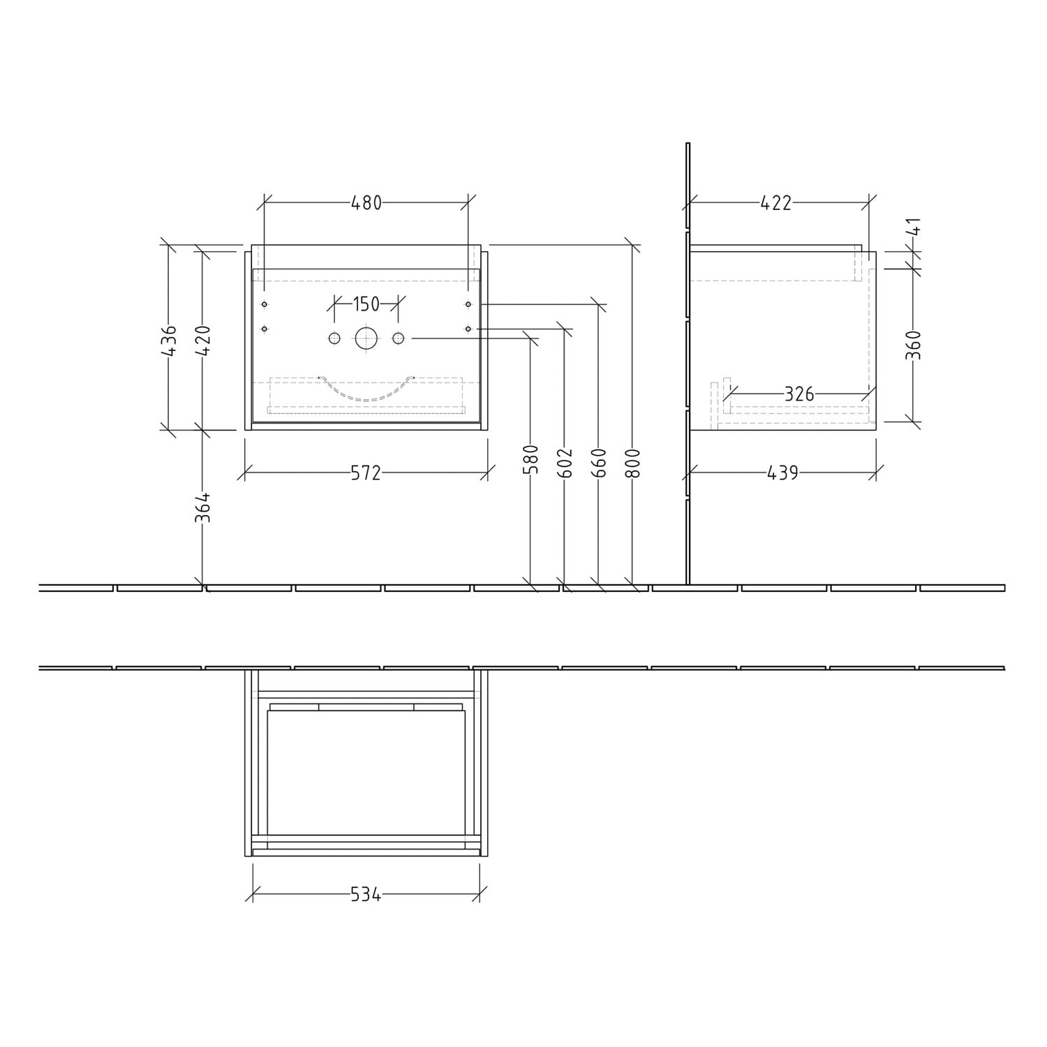 Villeroy & Boch Skyla Waschtischunterschrank 57,2 x 43,6 cm, 1 Auszug