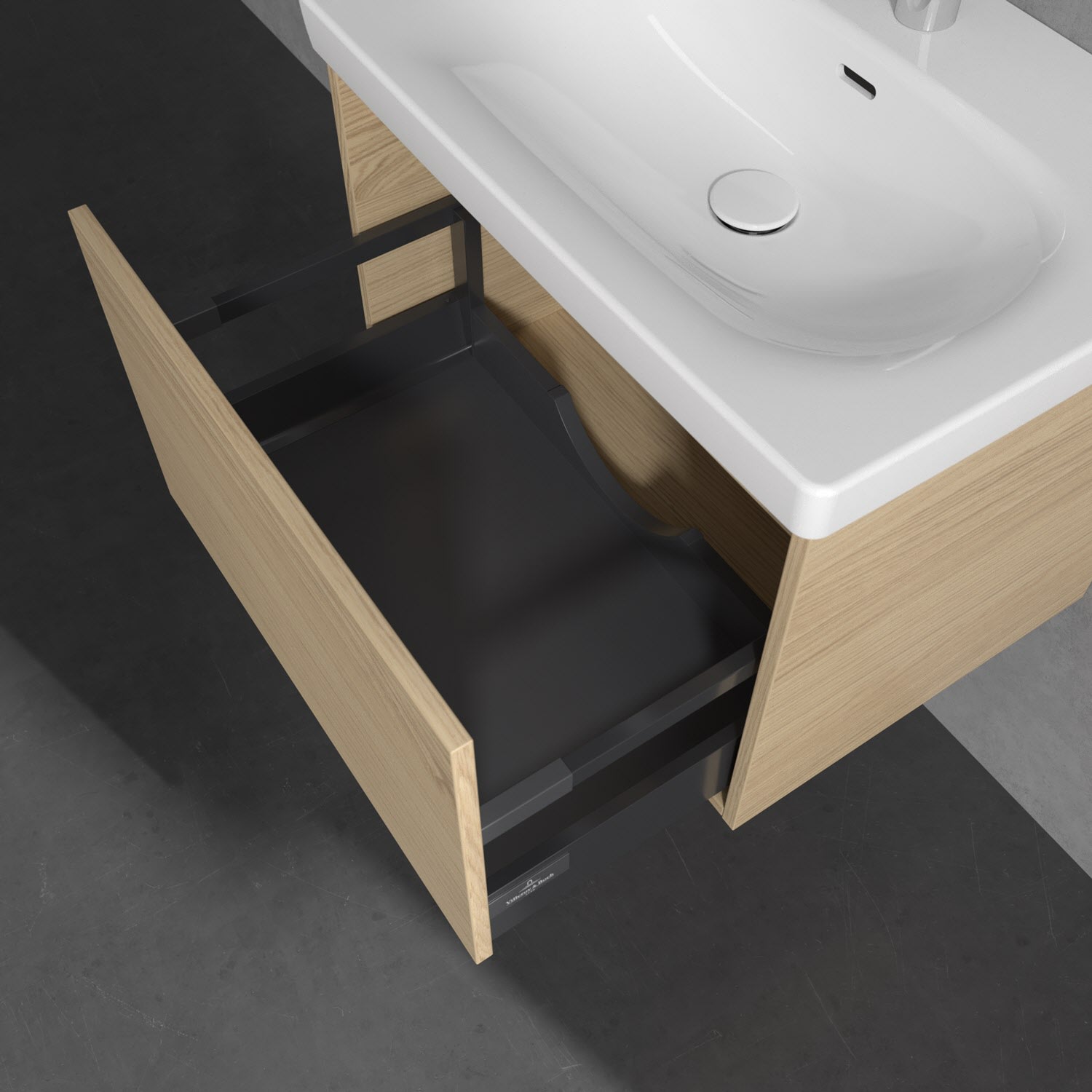 - Antirutsch-Boden in der Schublade sorgt dafür, dass Pflegeprodukte nicht umfallen