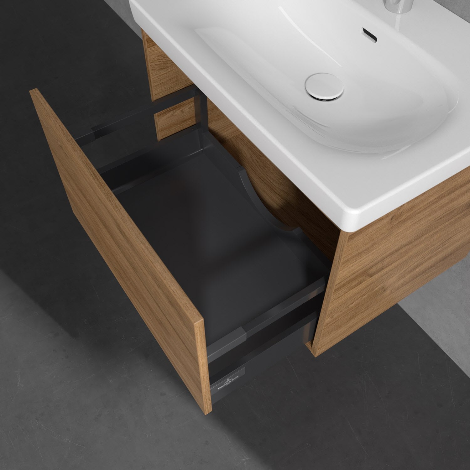 - Antirutsch-Boden in der Schublade sorgt dafür, dass Pflegeprodukte nicht umfallen