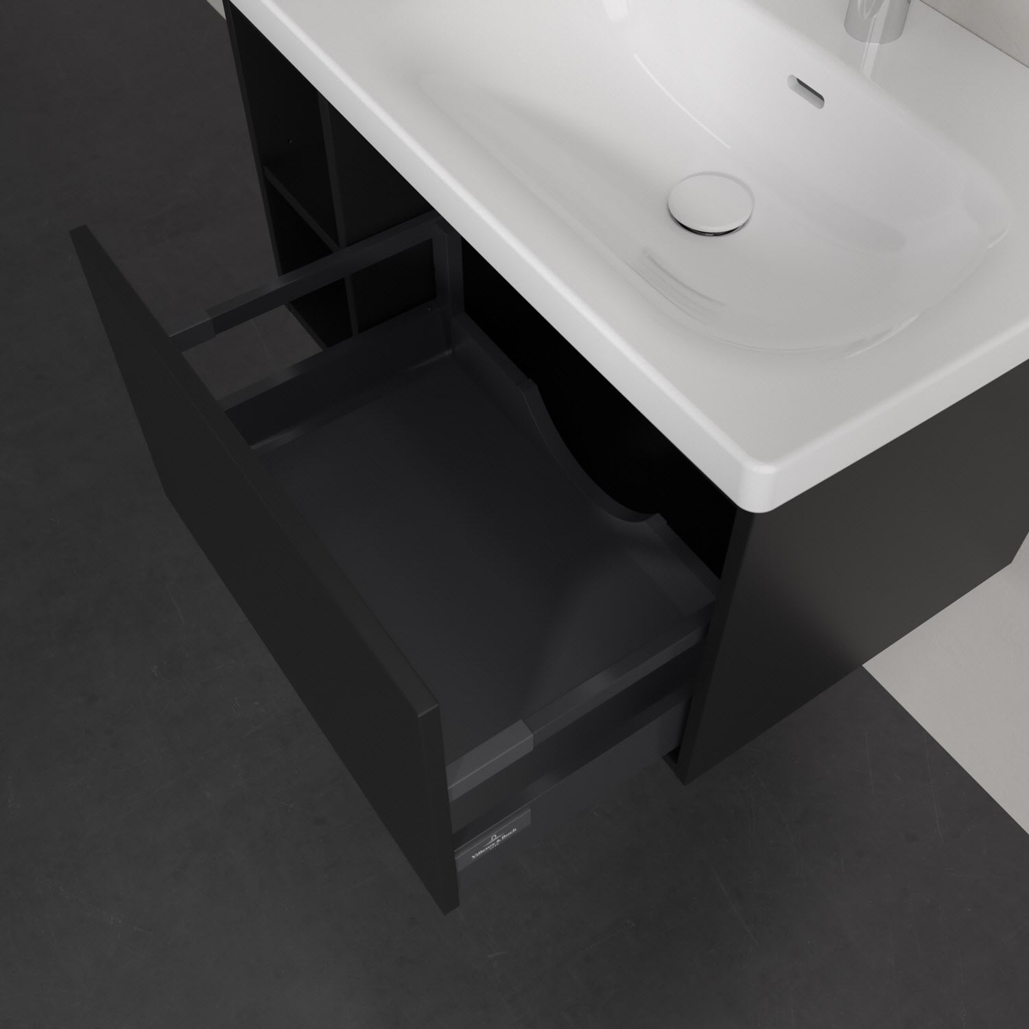 - Antirutsch-Boden in der Schublade sorgt dafür, dass Pflegeprodukte nicht umfallen
