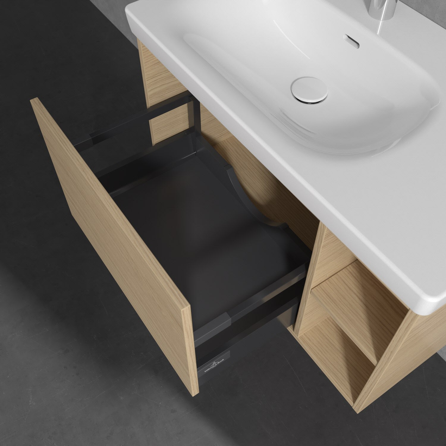 - Antirutsch-Boden in der Schublade sorgt dafür, dass Pflegeprodukte nicht umfallen