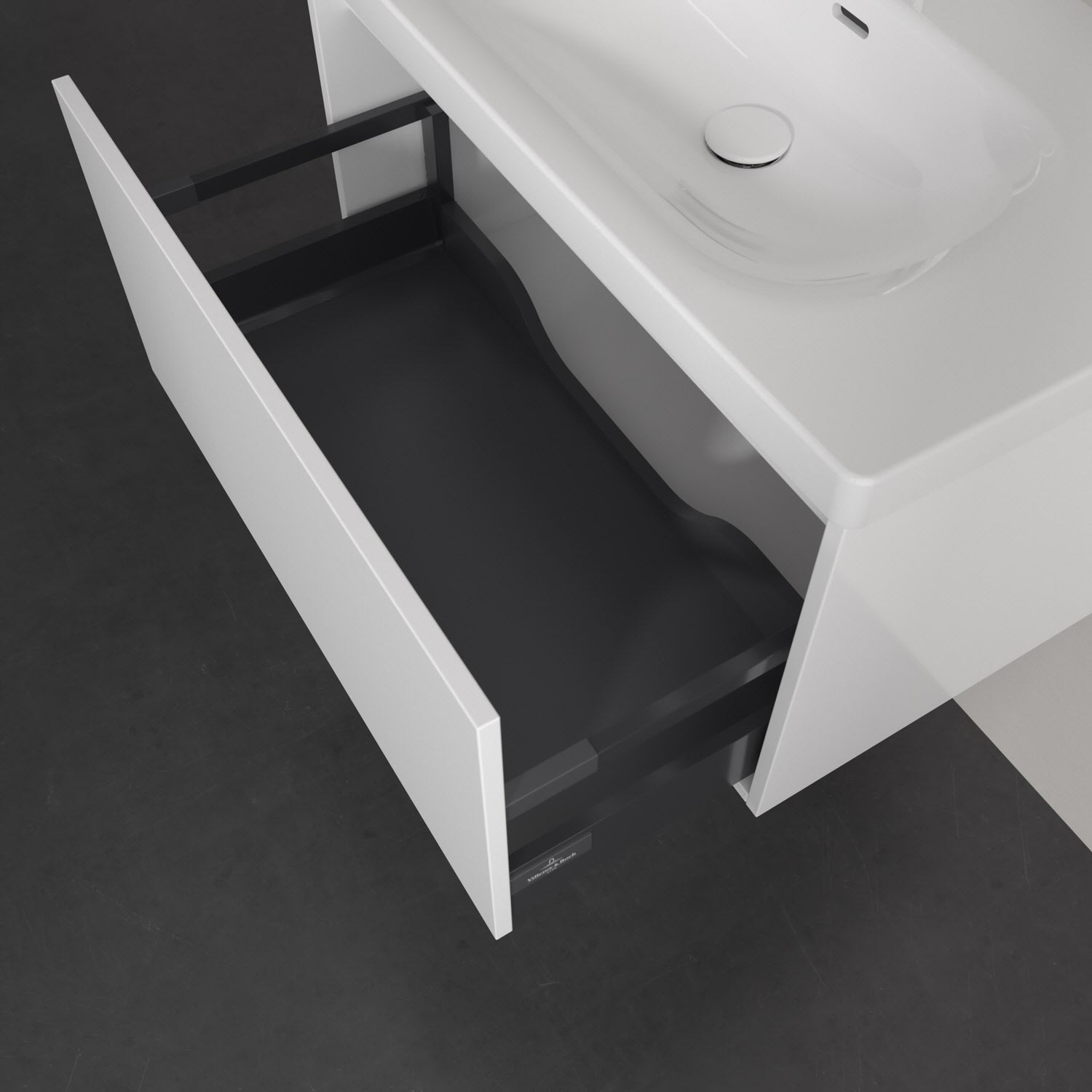 - Antirutsch-Boden in der Schublade sorgt dafür, dass Pflegeprodukte nicht umfallen