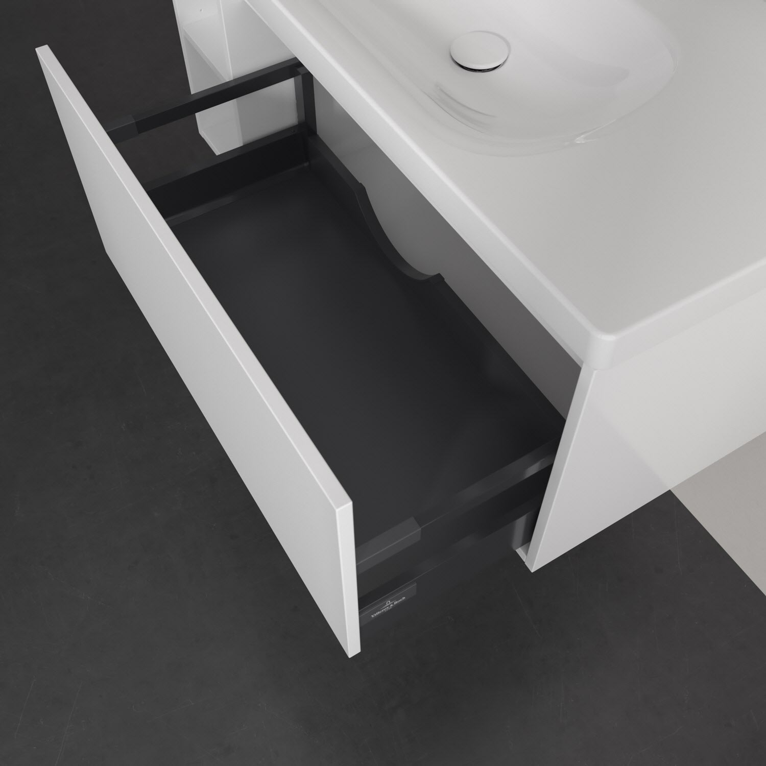 - Antirutsch-Boden in der Schublade sorgt dafür, dass Pflegeprodukte nicht umfallen