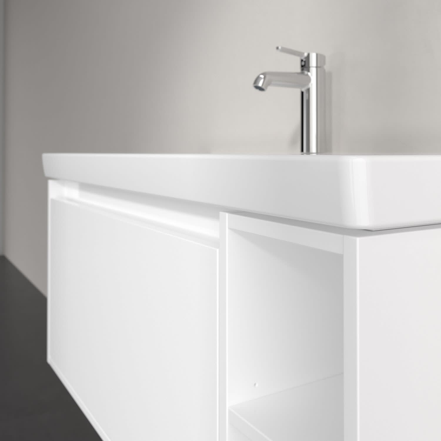 Für ein stimmiges Gesamtbild lässt sich der Unterschrank ideal mit Skyla Waschbecken, Armaturen und weiteren Möbelstücken der Kollektion kombinieren. Ergänzend dazu: der Villeroy & Boch Spiegel More to See Lite+ für noch mehr Funktionalität im Bad.