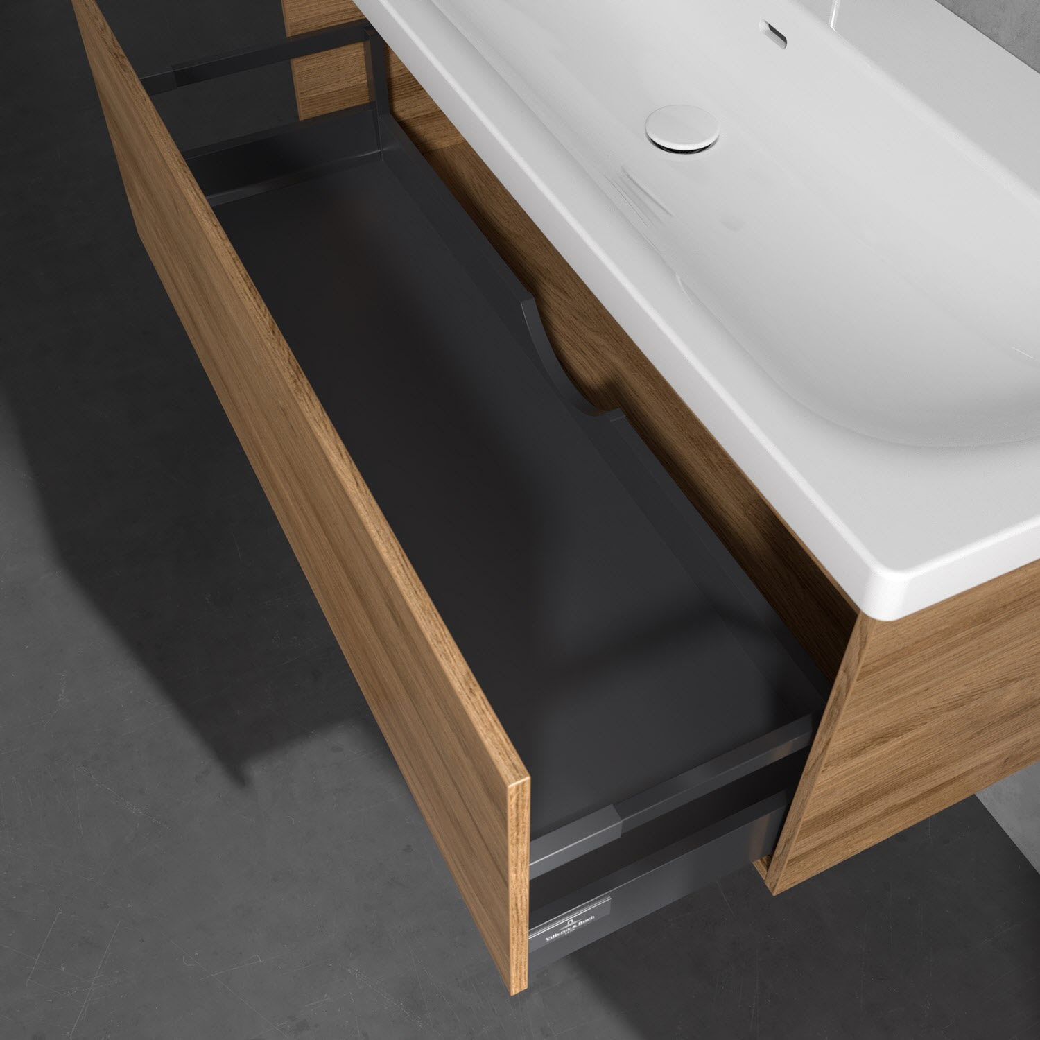 - Antirutsch-Boden in der Schublade sorgt dafür, dass Pflegeprodukte nicht umfallen