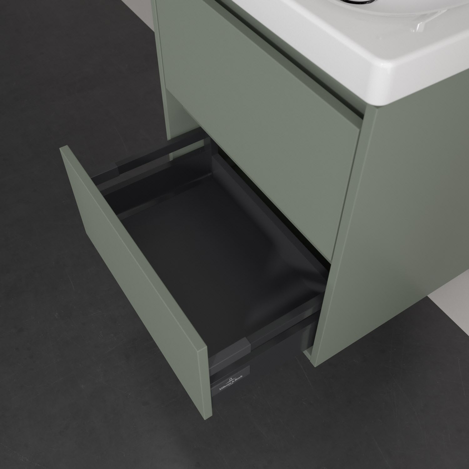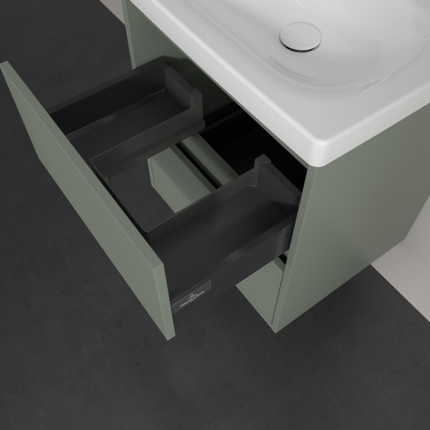 - Antirutsch-Boden in der Schublade sorgt dafür, dass Pflegeprodukte nicht umfallen