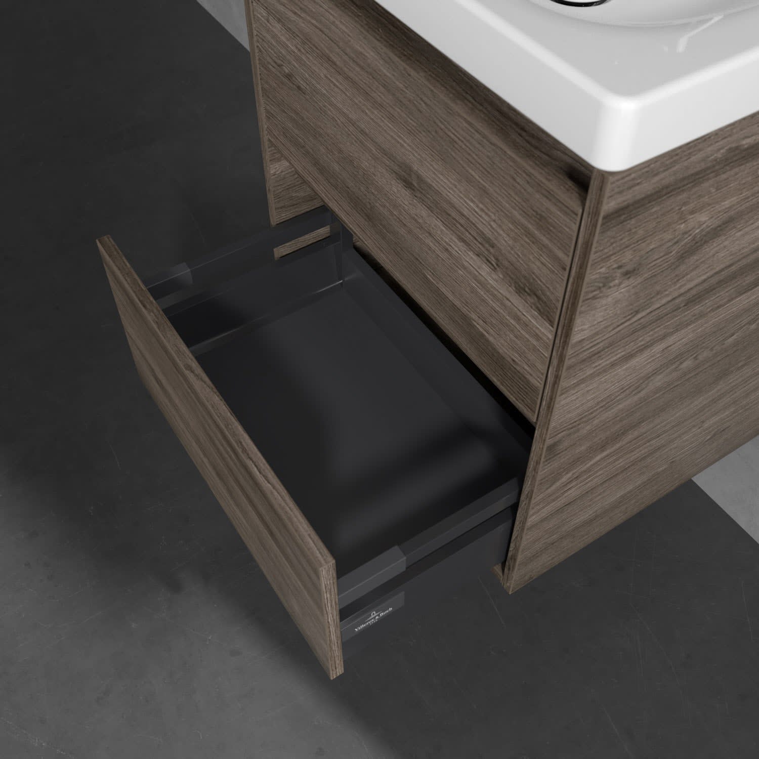 - Antirutsch-Boden in der Schublade sorgt dafür, dass Pflegeprodukte nicht umfallen