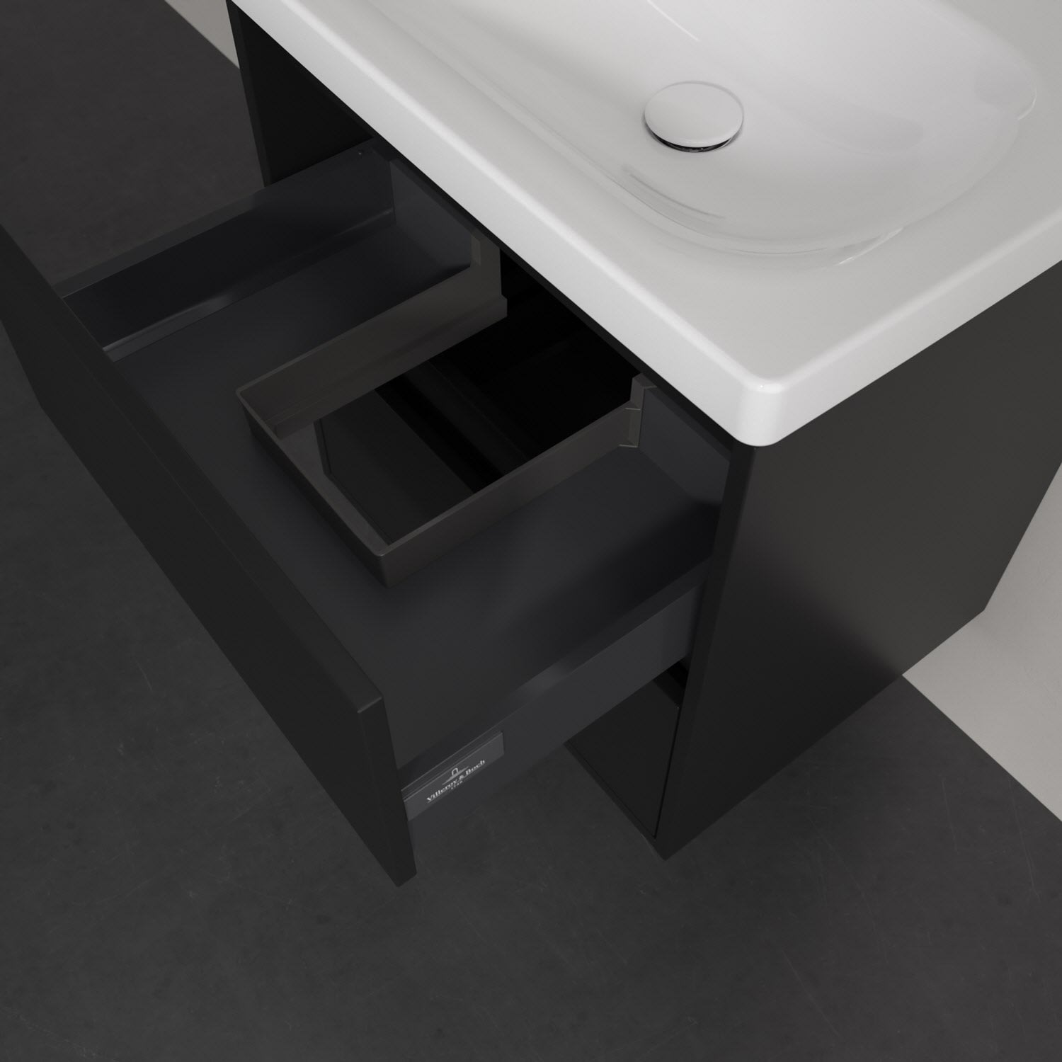 - Antirutsch-Boden in der Schublade sorgt dafür, dass Pflegeprodukte nicht umfallen