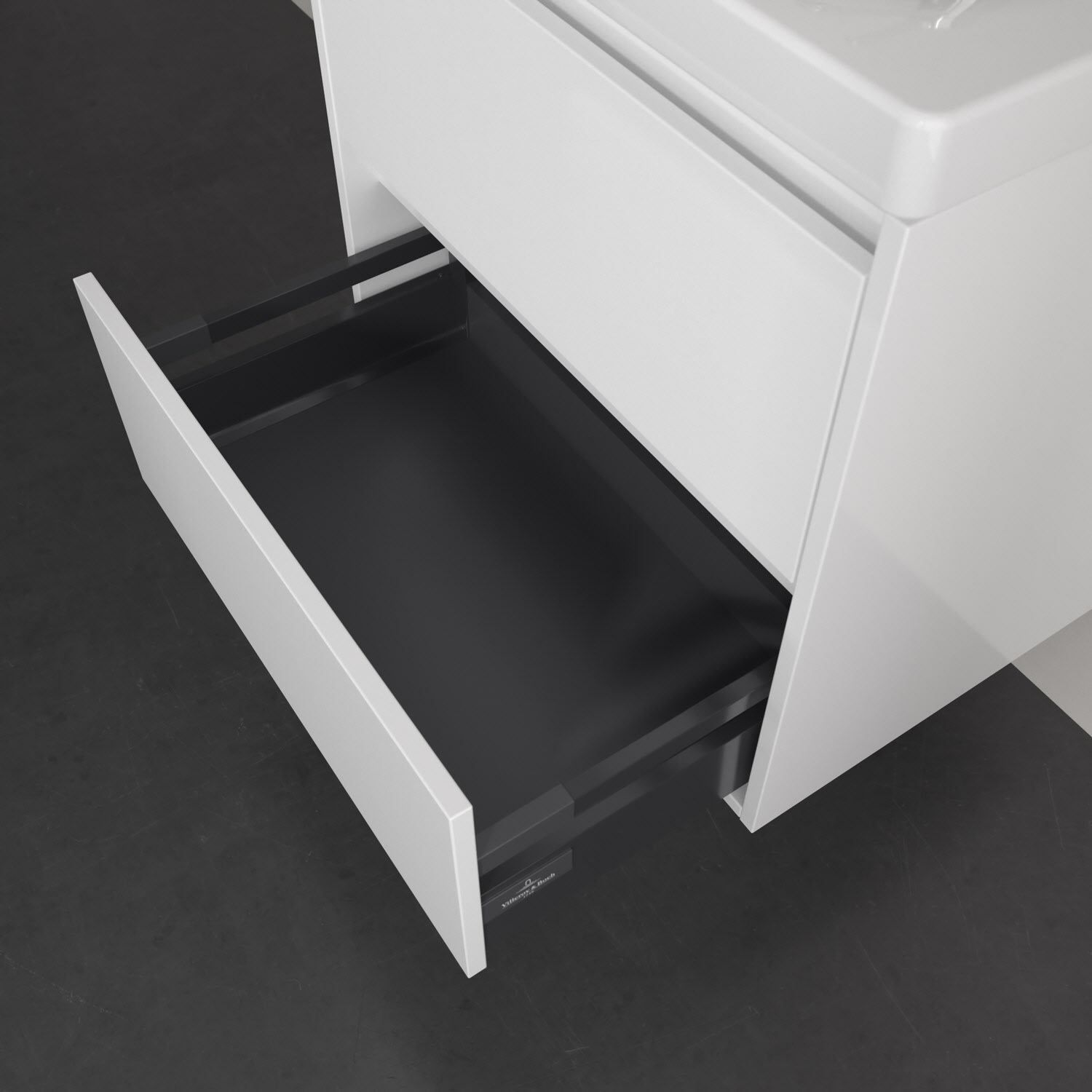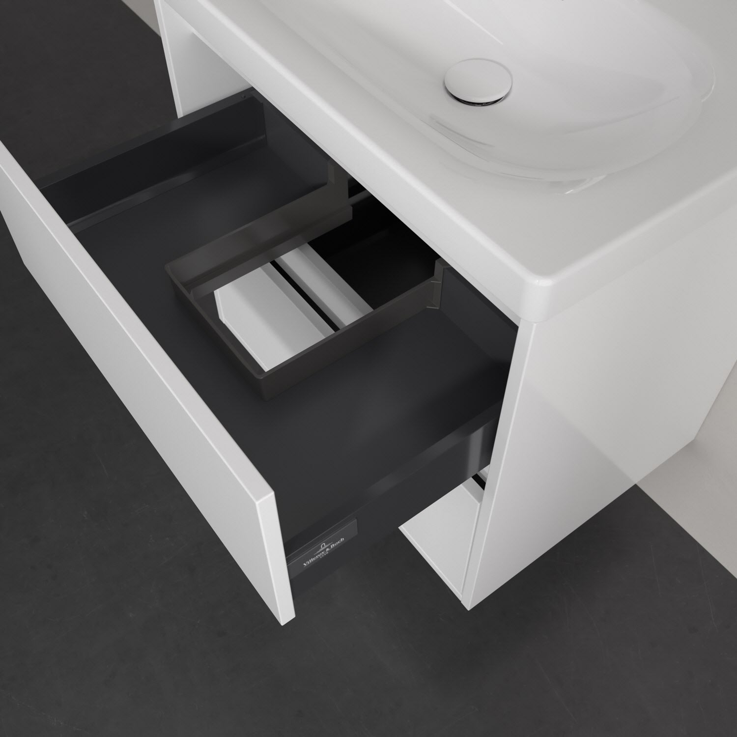 - Antirutsch-Boden in der Schublade sorgt dafür, dass Pflegeprodukte nicht umfallen