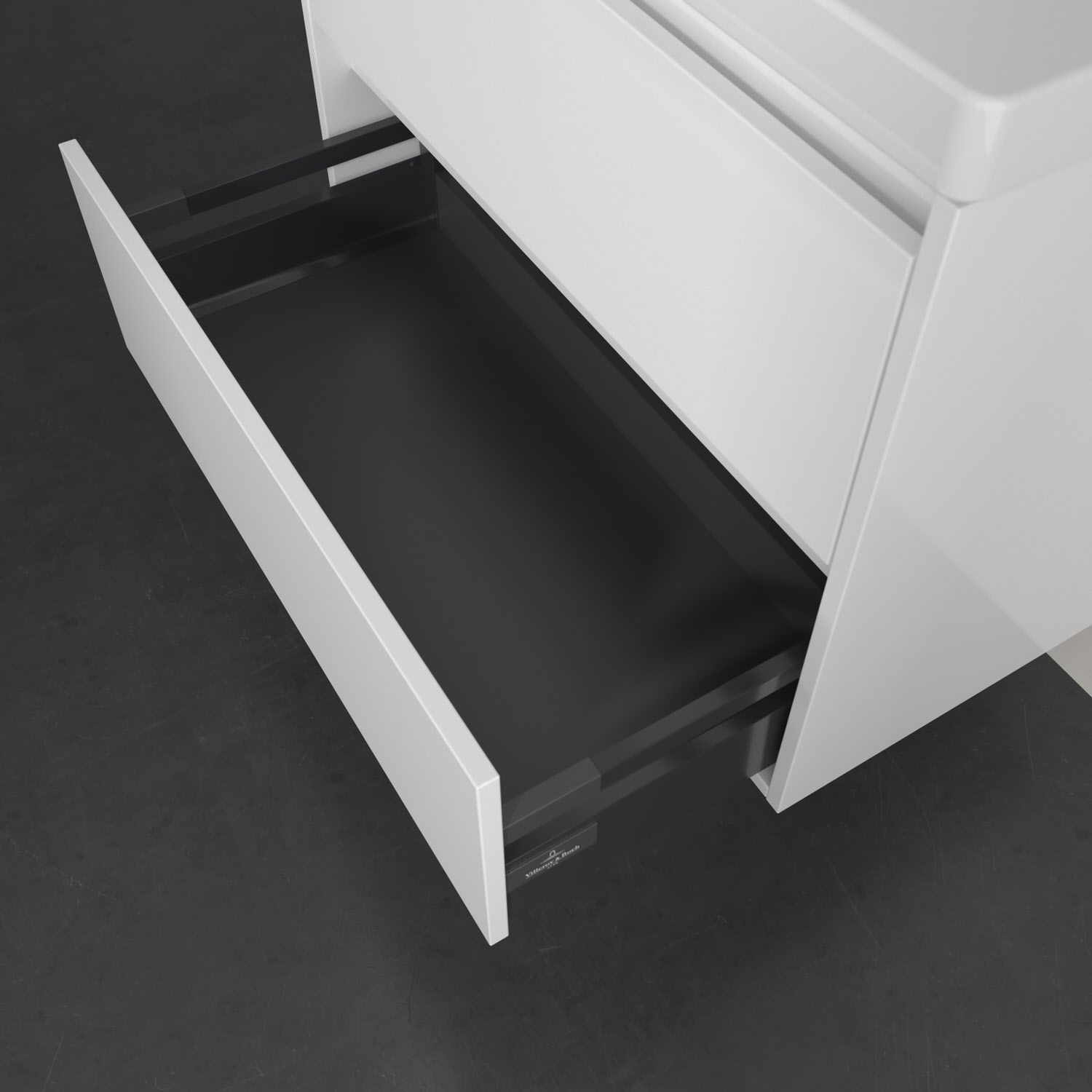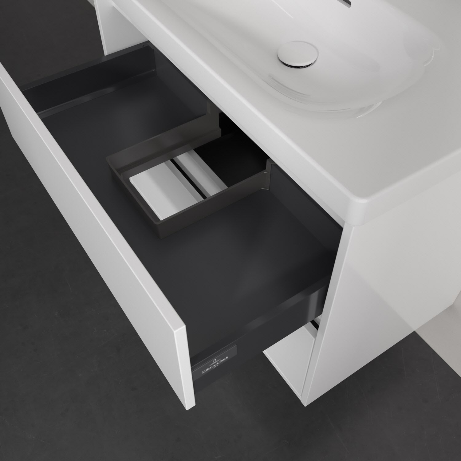 - Antirutsch-Boden in der Schublade sorgt dafür, dass Pflegeprodukte nicht umfallen