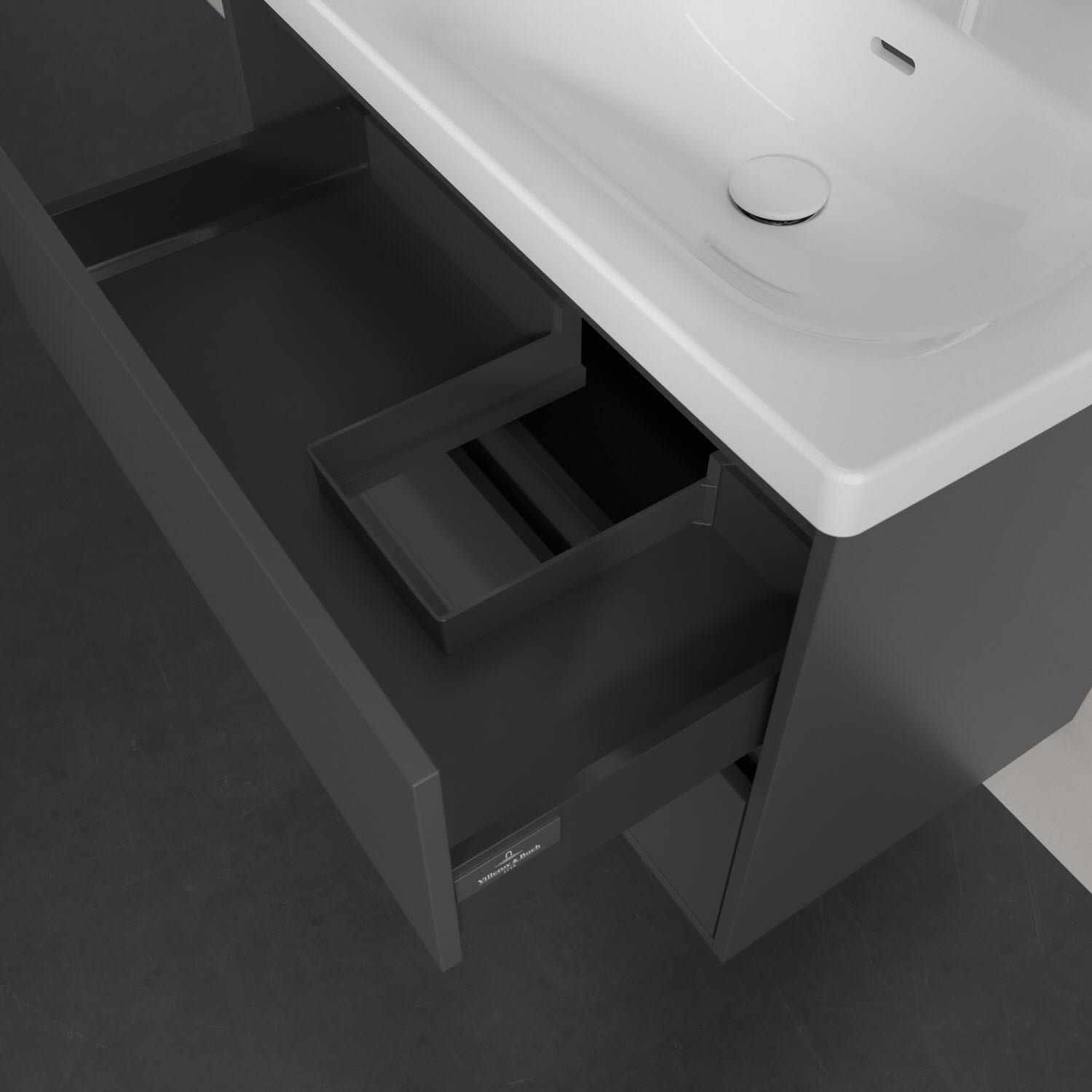 - Antirutsch-Boden in der Schublade sorgt dafür, dass Pflegeprodukte nicht umfallen