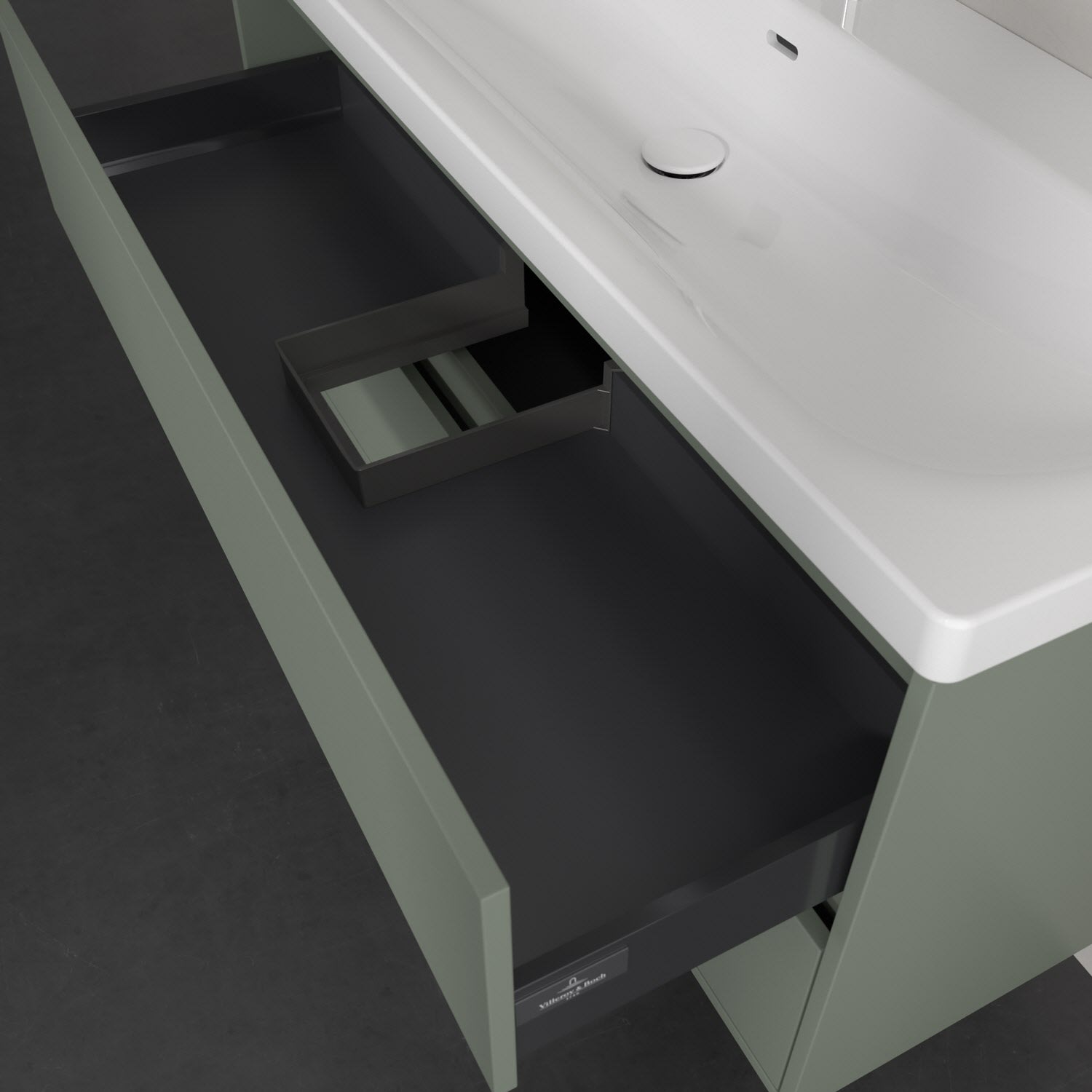 - Antirutsch-Boden in der Schublade sorgt dafür, dass Pflegeprodukte nicht umfallen