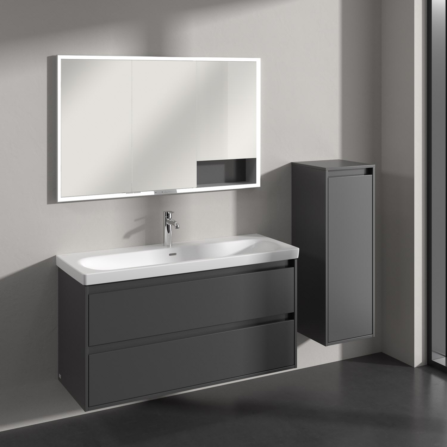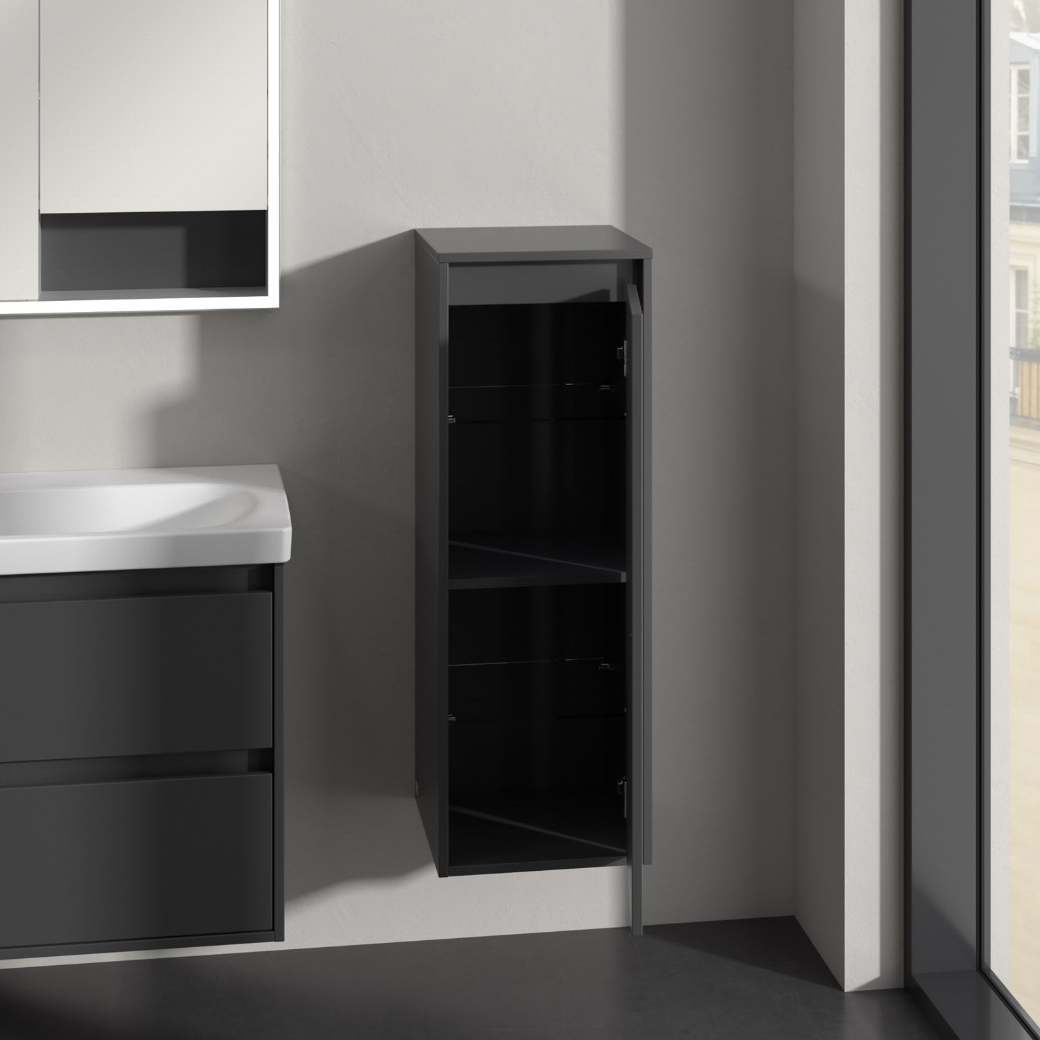 Perfekt kombinierbar mit weiteren Möbeln der Skyla Kollektion im gleichen Dekor für ein harmonisches Gesamtbild. Ergänzend dazu: der Villeroy & Boch Spiegel More to See Lite+ für noch mehr Funktionalität am Waschplatz.