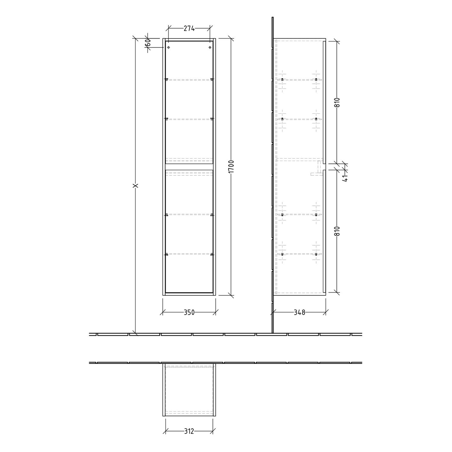 Villeroy & Boch Skyla Hochschrank 35 x 170 cm, Anschlag links