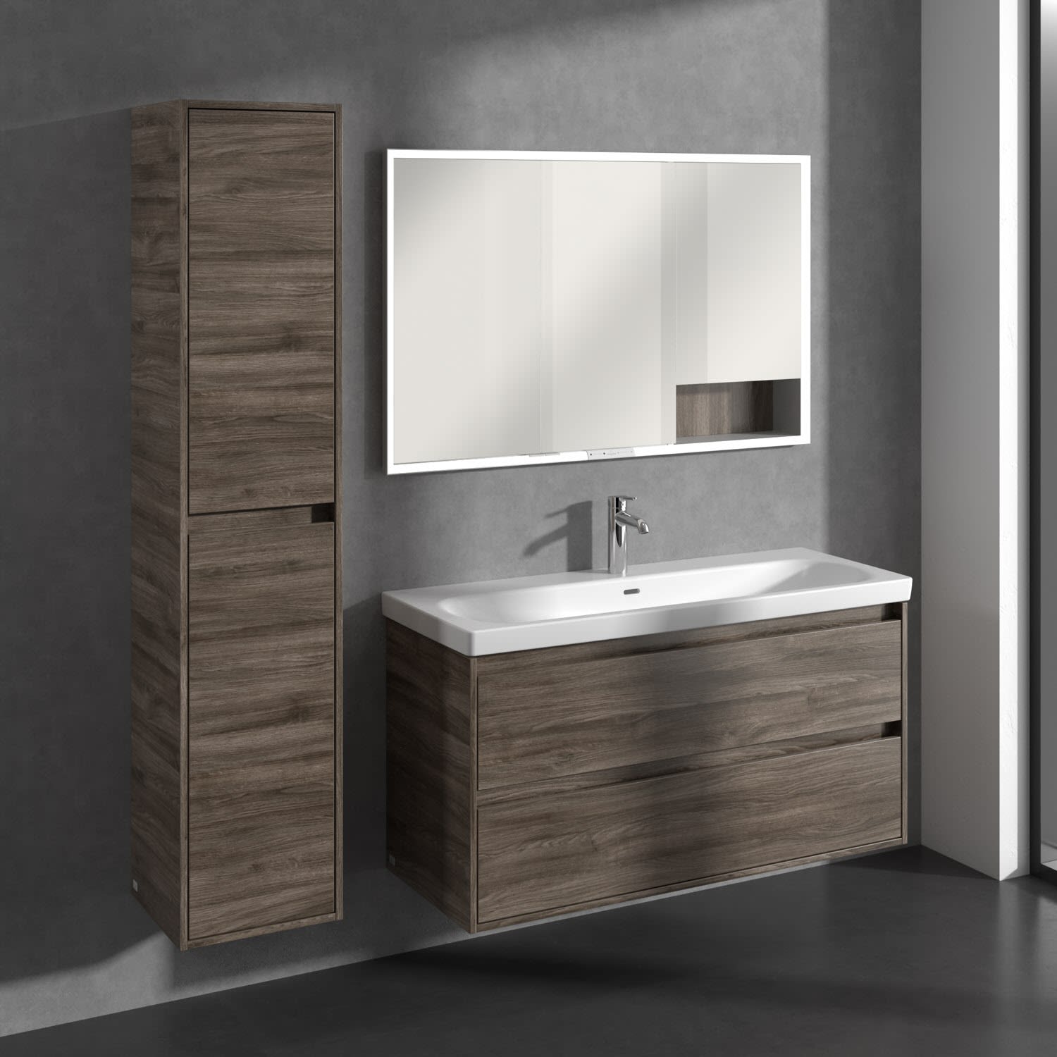 Perfekt kombinierbar mit weiteren Möbeln der Skyla Kollektion im gleichen Dekor für ein harmonisches Gesamtbild. Ergänzend dazu: der Villeroy & Boch Spiegel More to See Lite+ für noch mehr Funktionalität am Waschplatz.