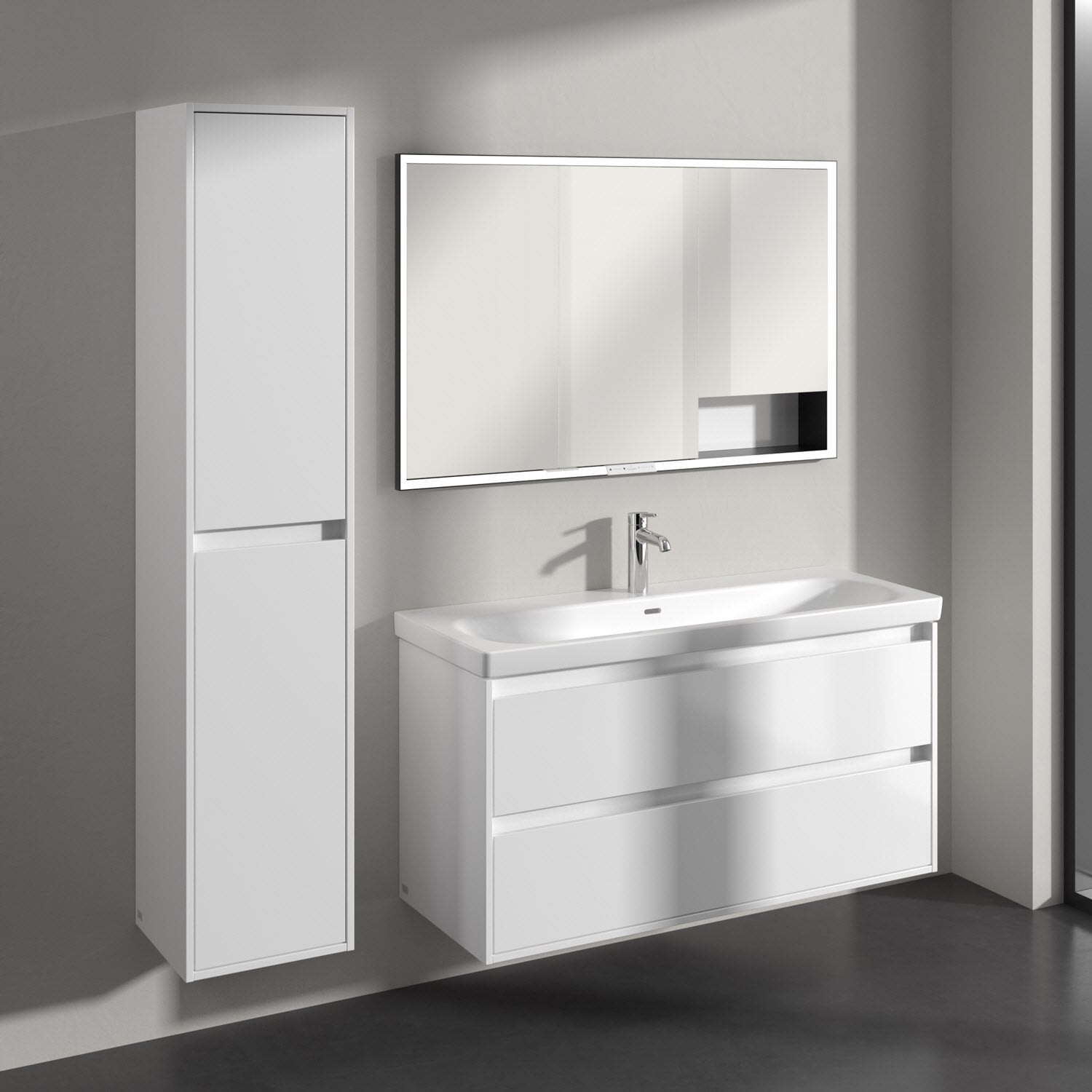 Perfekt kombinierbar mit weiteren Möbeln der Skyla Kollektion im gleichen Dekor für ein harmonisches Gesamtbild. Ergänzend dazu: der Villeroy & Boch Spiegel More to See Lite+ für noch mehr Funktionalität am Waschplatz.